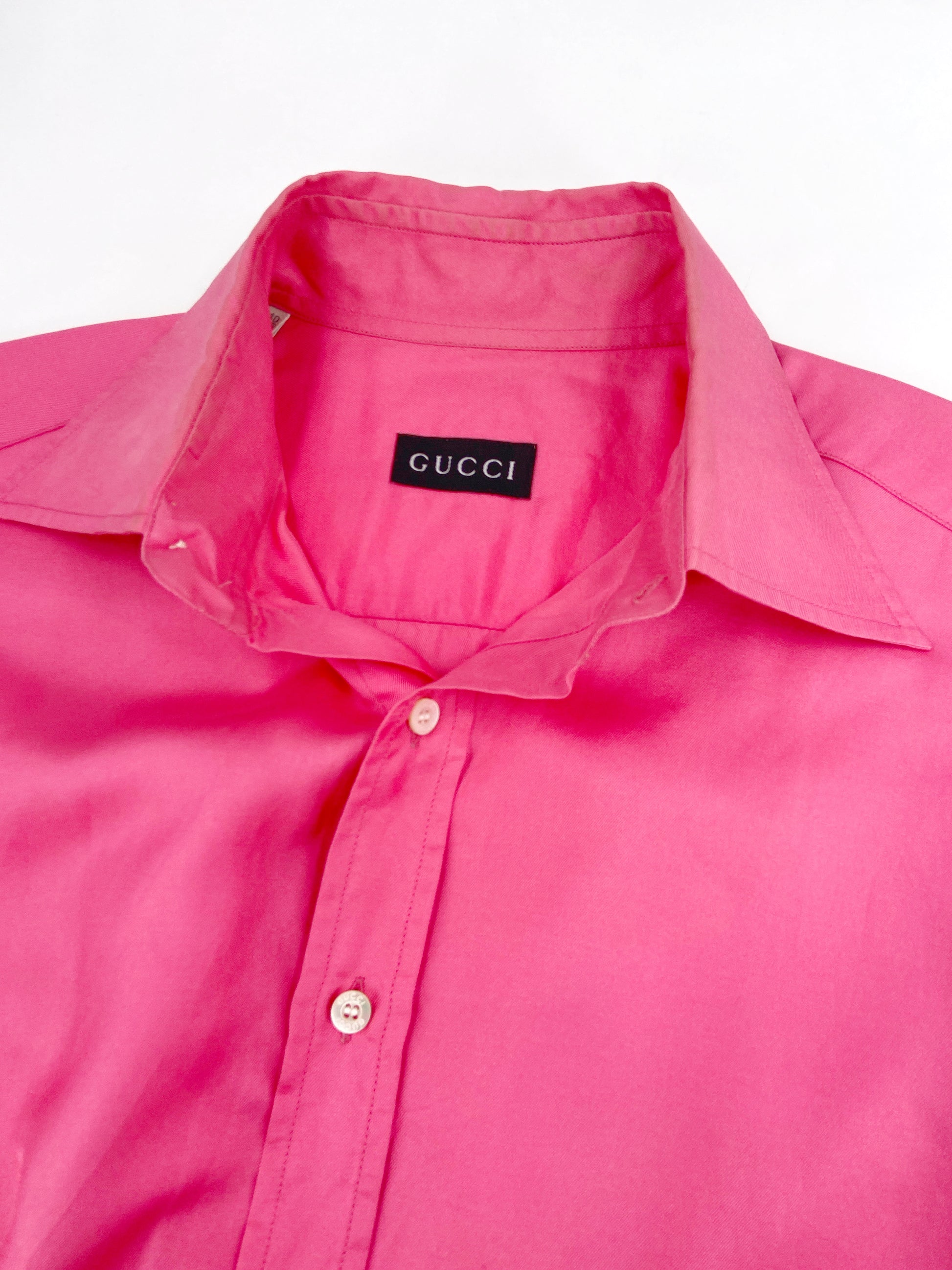 Gucci Fall 1997 Tom Ford Men’s Pink Silk Dress Shirt