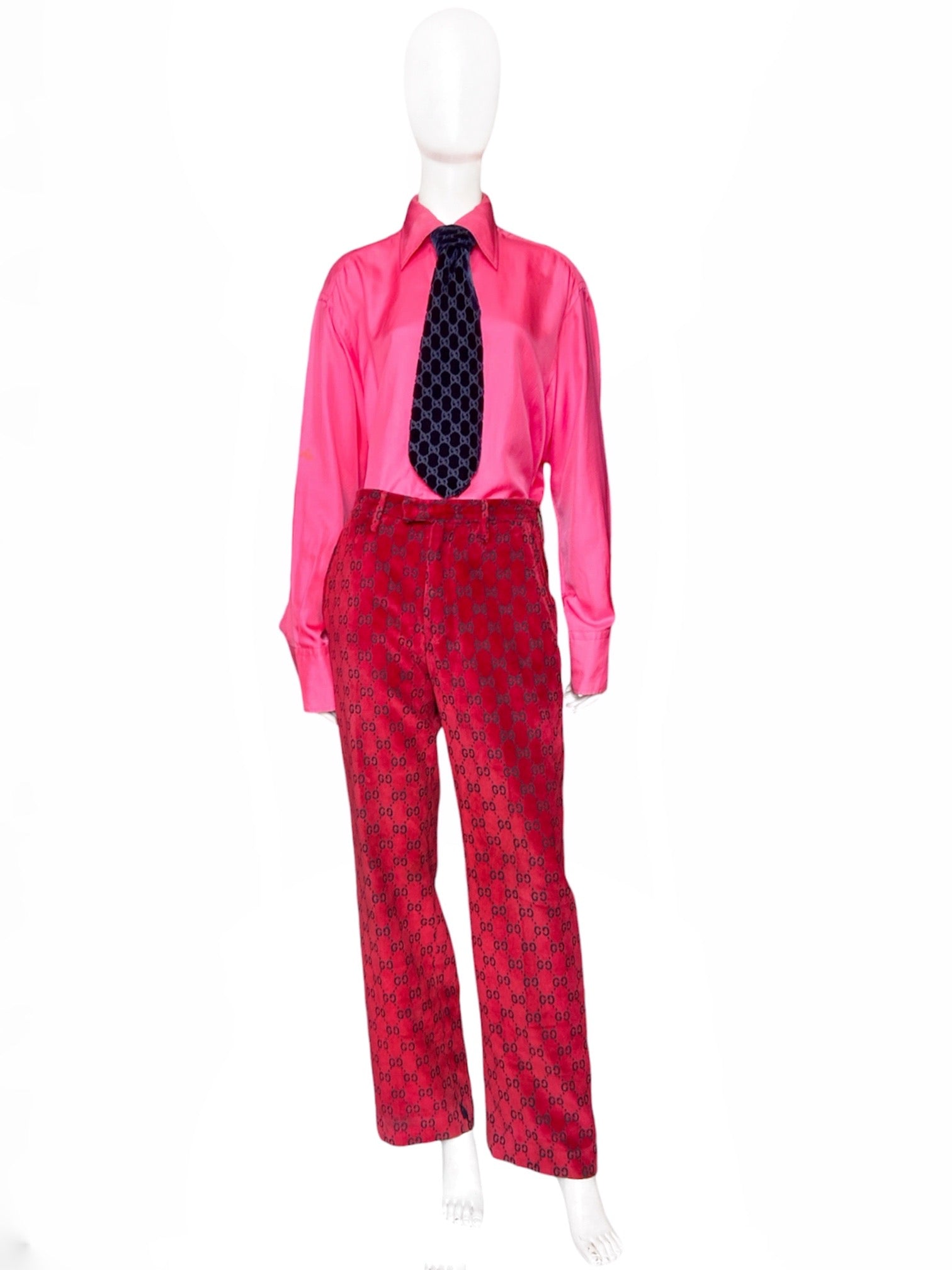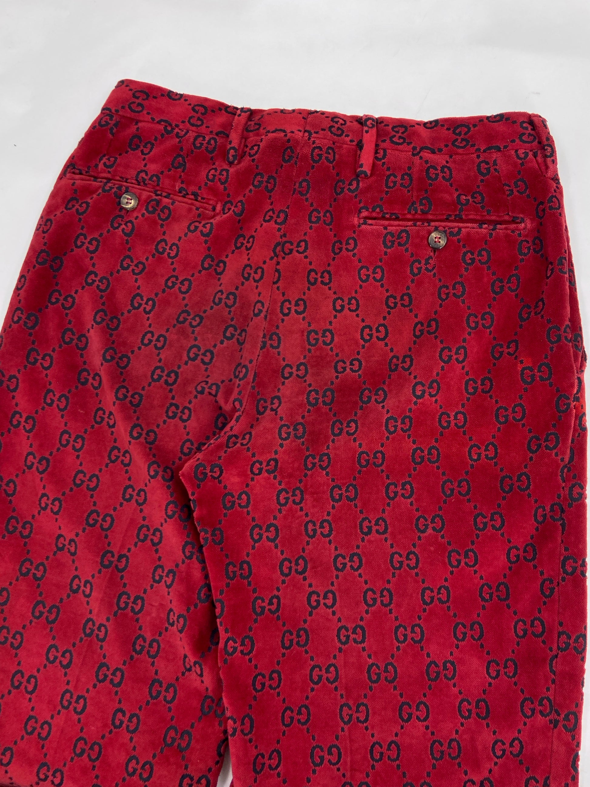 Gucci Fall 1997 Tom Ford Men’s Red Monogram Velvet Trousers Pants 46