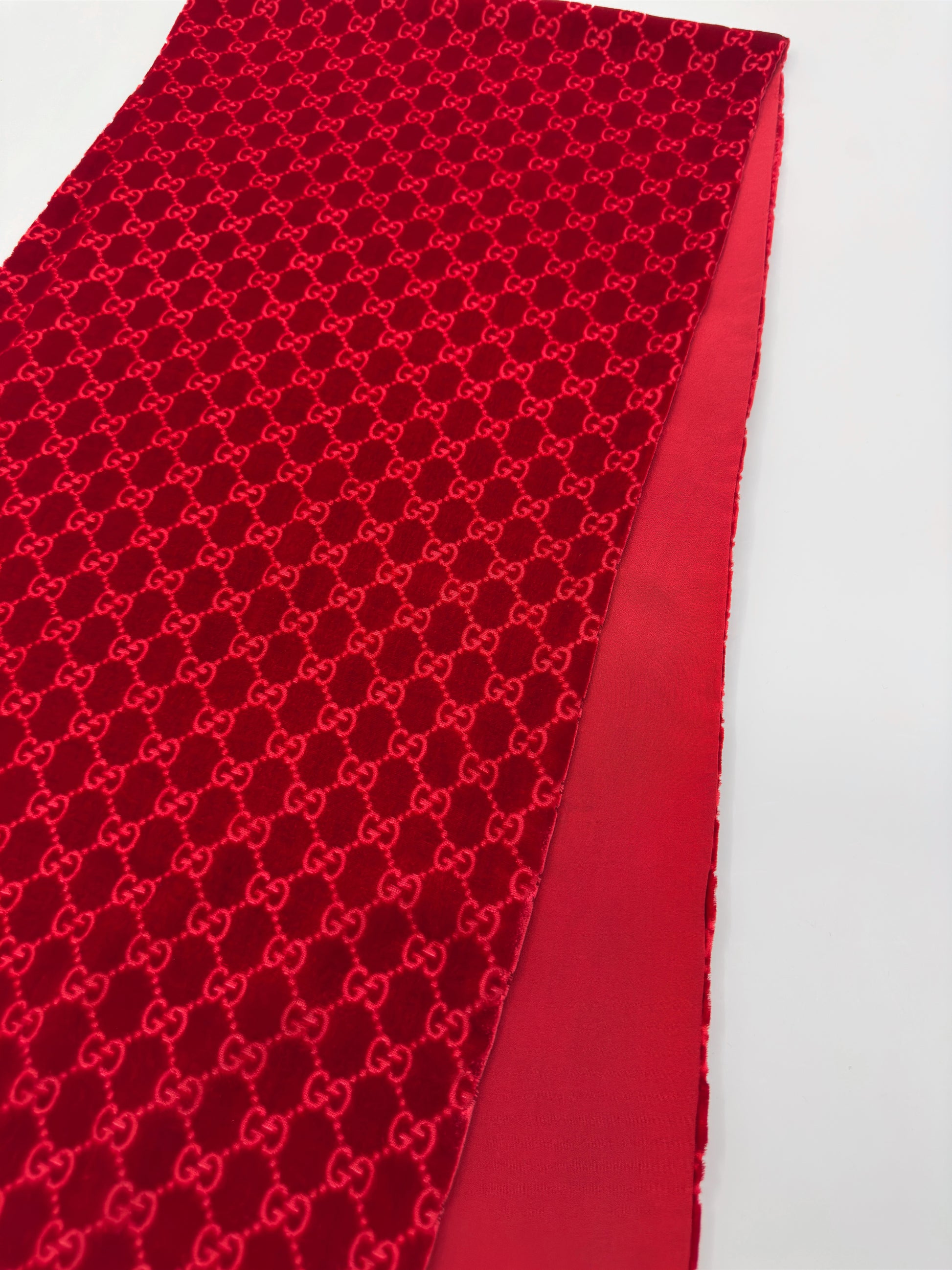 Gucci Fall 1997 Tom Ford Red Monogram Velvet Scarf