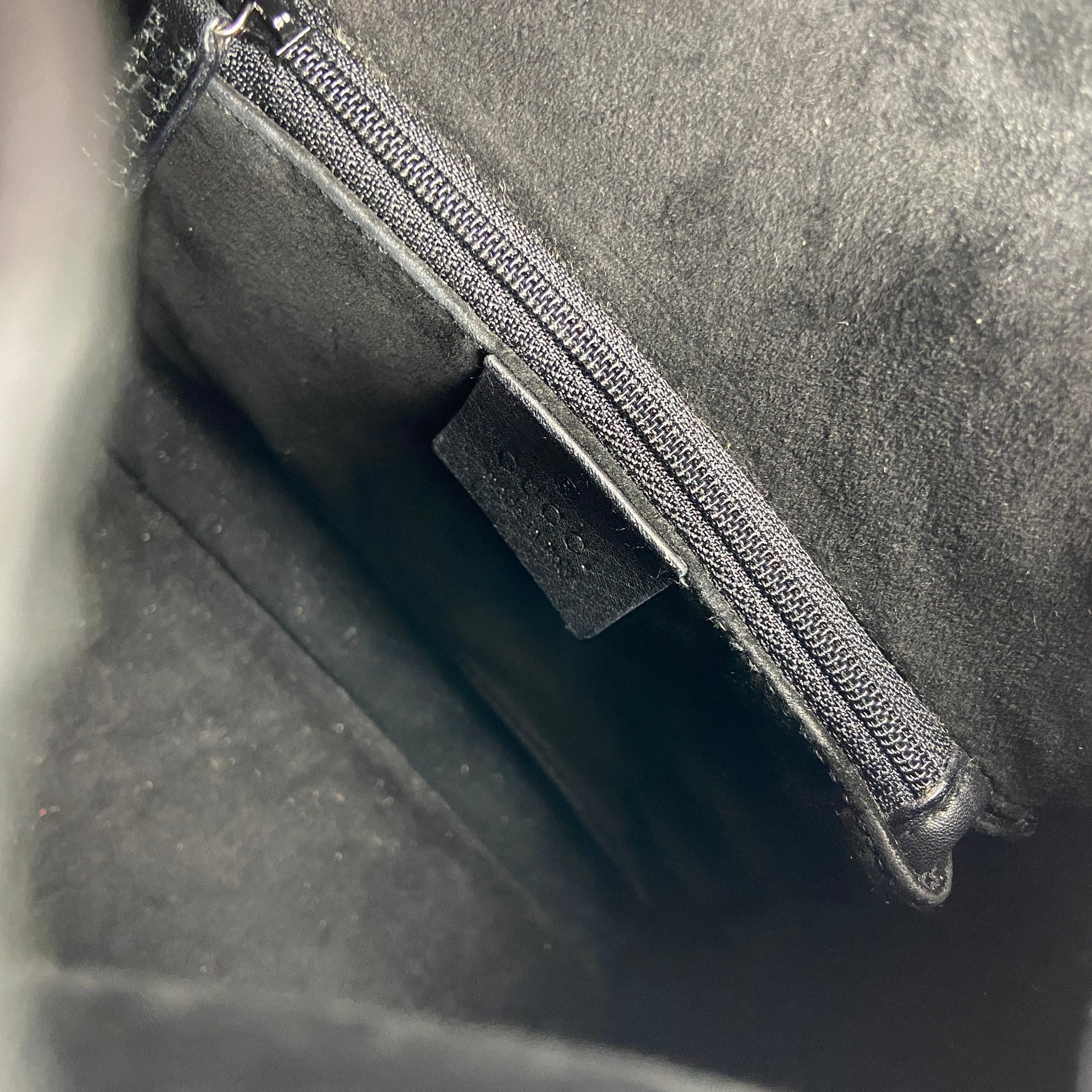 This exquisite handbag from the Gucci Fall/Winter 1999 collection designed by Tom Ford, crafted from a very soft leather, embellished with a lucite hoop, same design featured on the runway and featured in the ad campaign, shot by Mario Testino and featuring Liisa Winkler. Moreover, the lucite handle, fastened with silver metal rings, and a small silver-plated branded section. The interior features a small pocket. The bag is very easy to open or close, can be worn on shoulder or just on the arm. In mint condition, little signs of use.