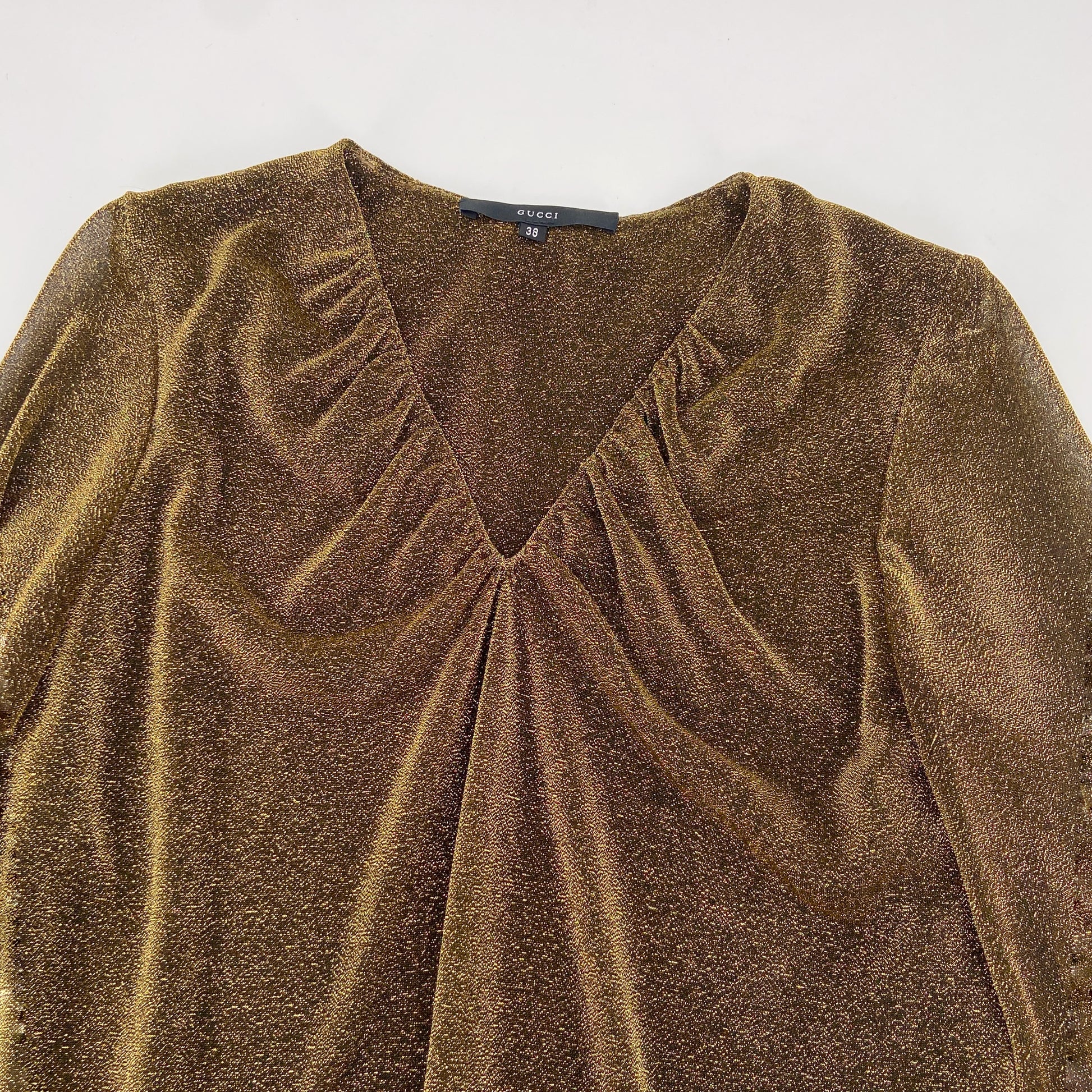 Gucci Fall 2000 Tom Ford Runway Gold Glitter Dress 38