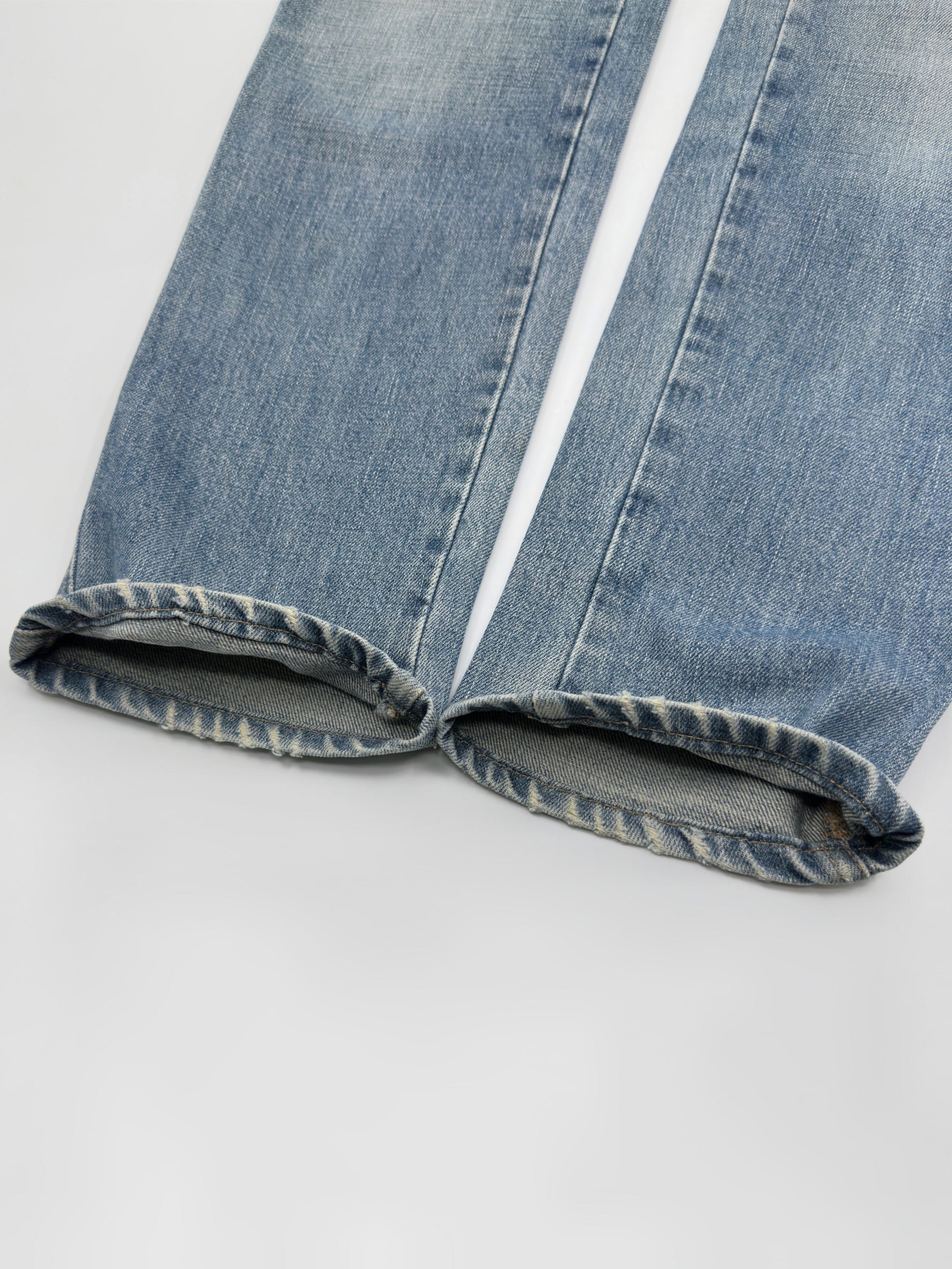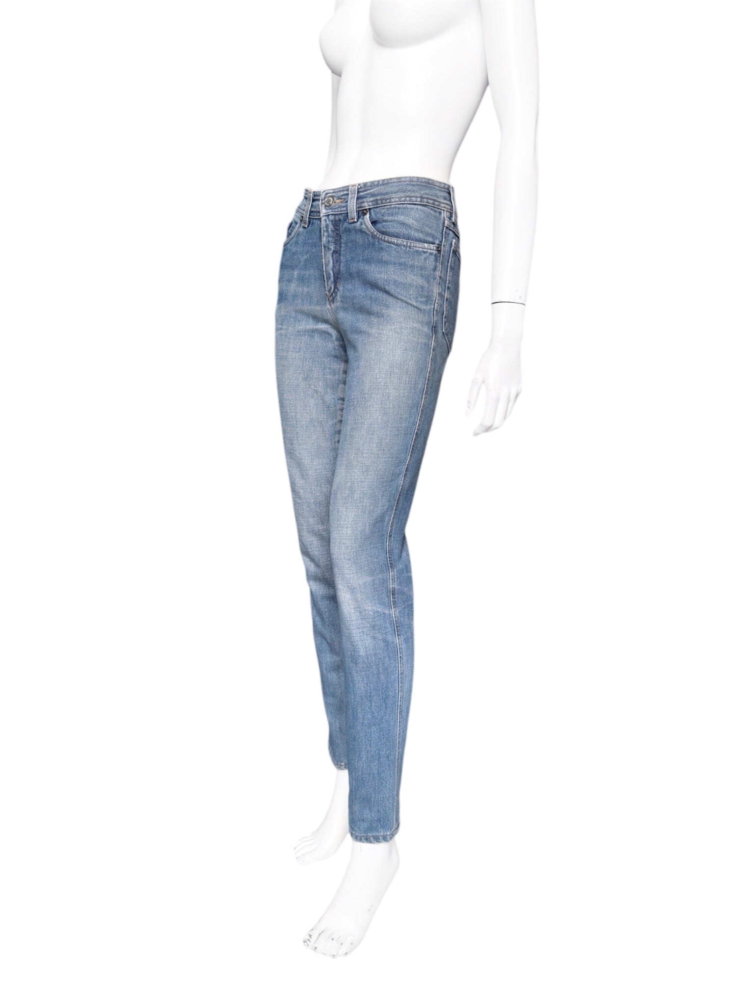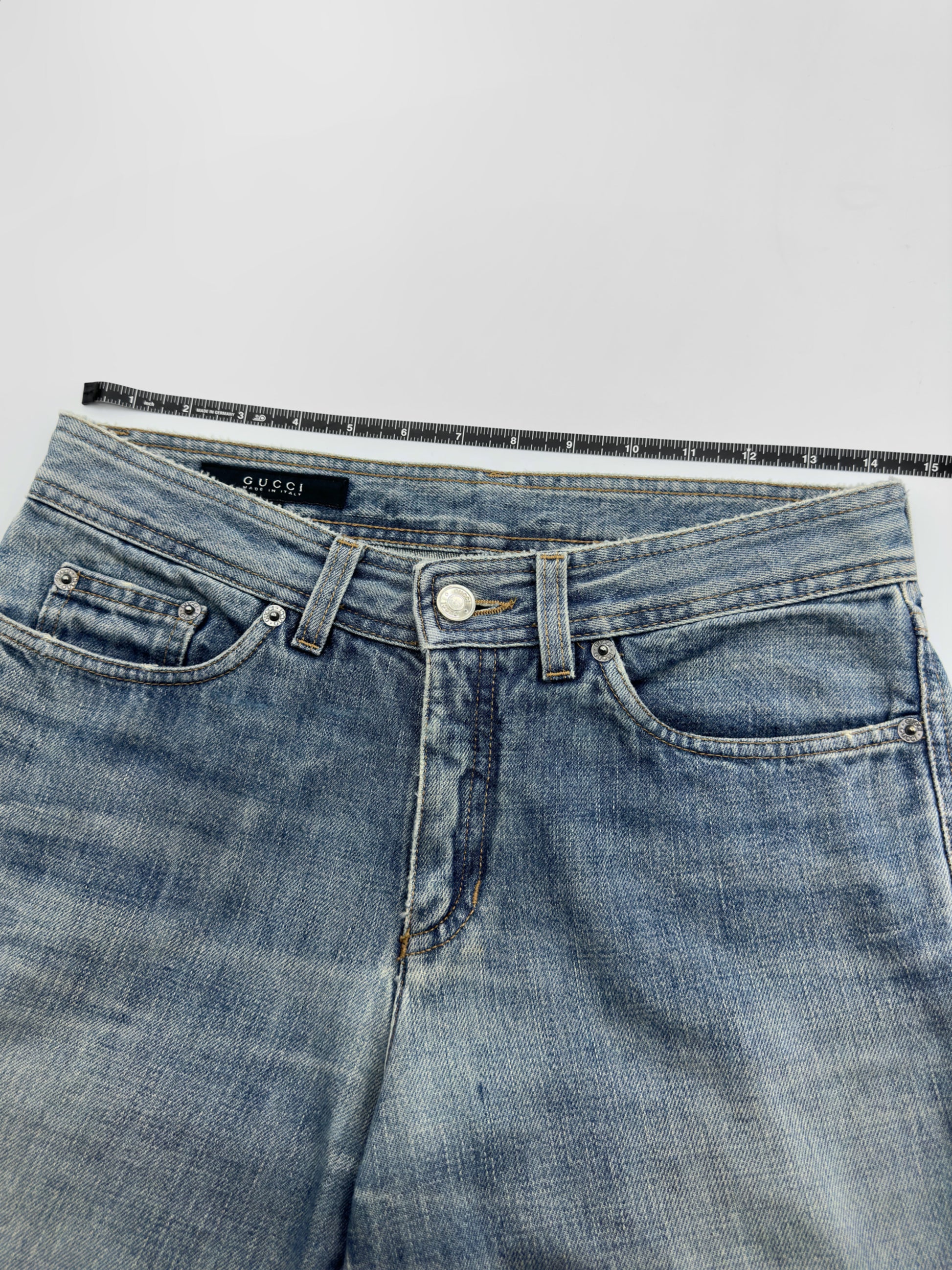 Gucci Fall 2001 Tom Ford “G” Cursive Embroidery Light Blue Washed Jeans