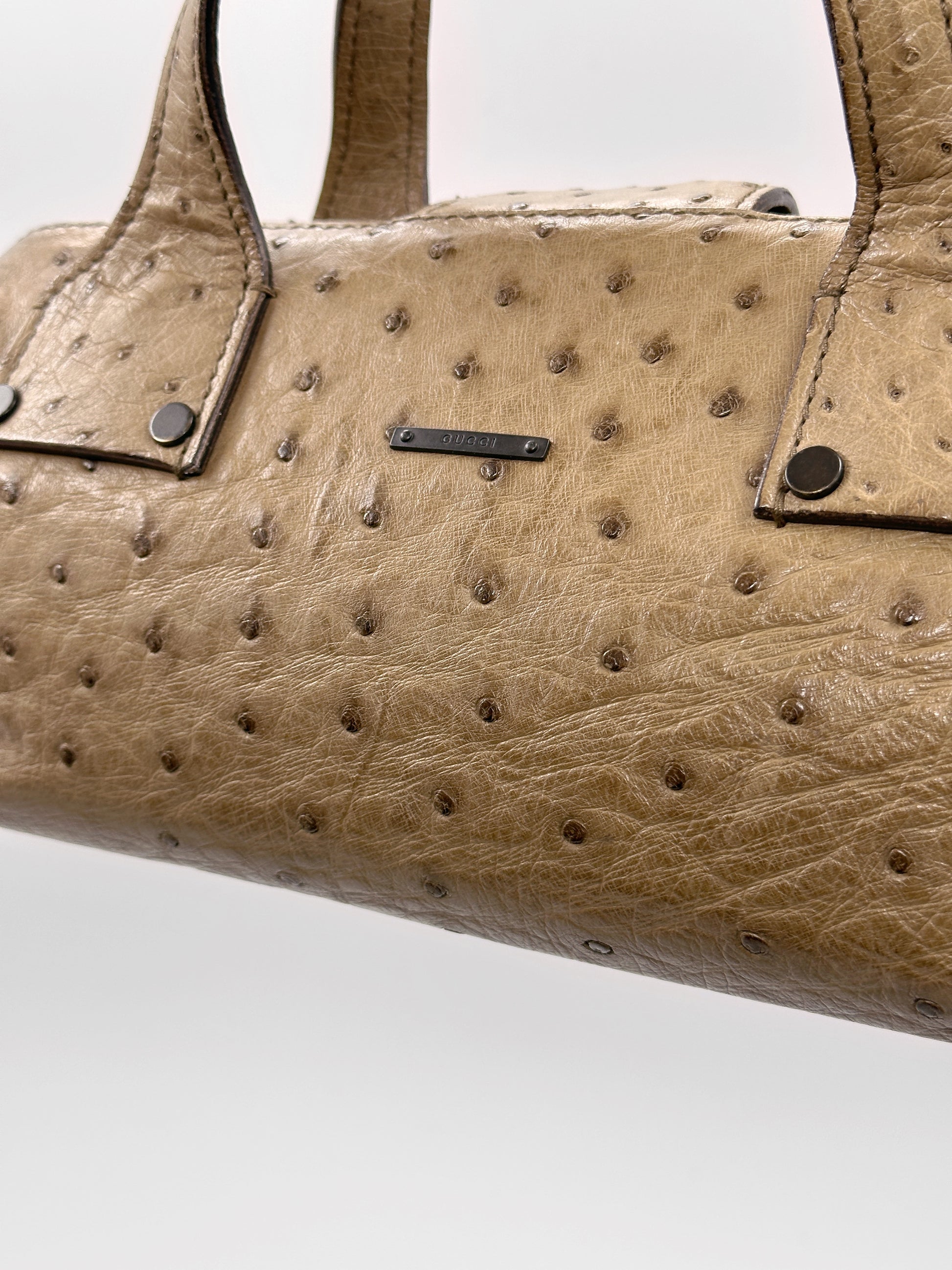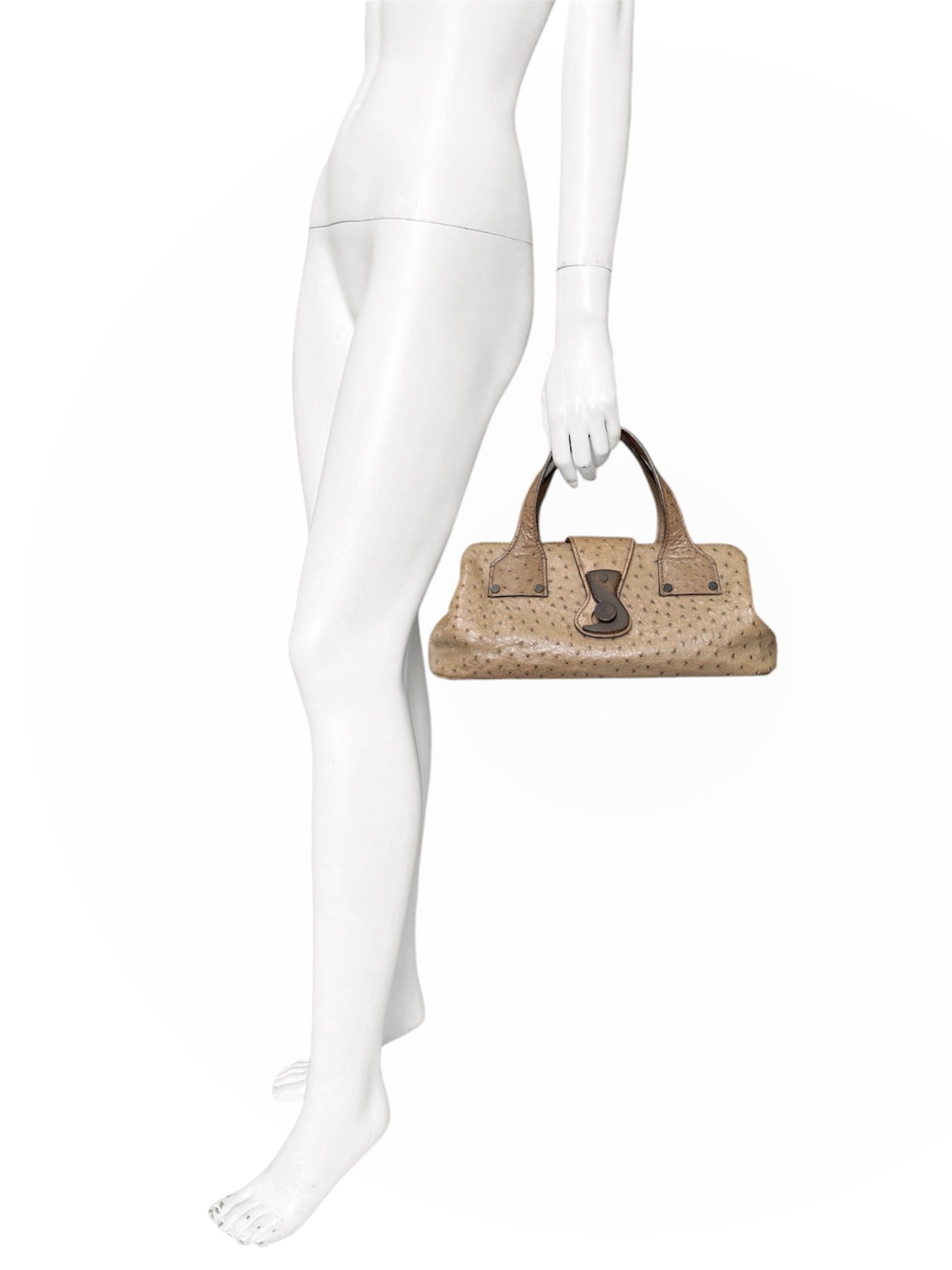 Gucci Fall 2002 Tom Ford Light Bark Beige Ostrich Leather Wooden Hook Doctors Bag Handbag