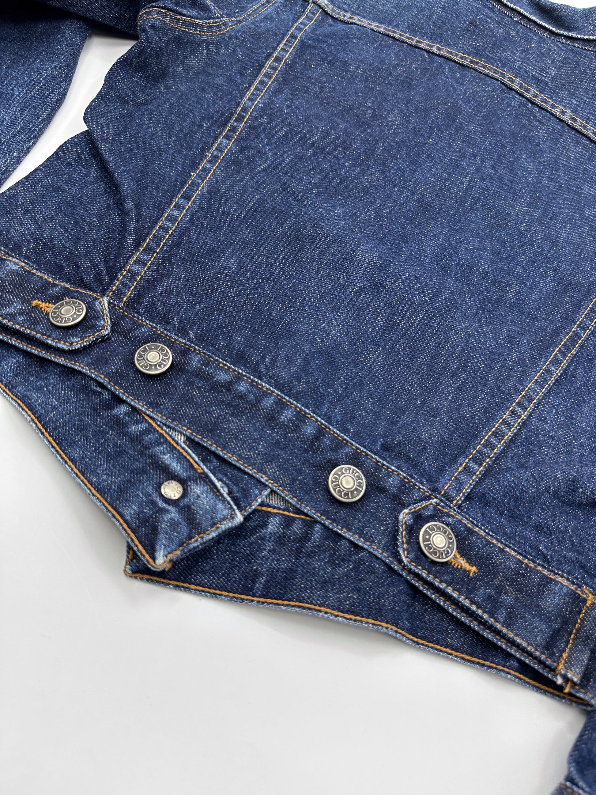 There are often listings online that claim that they have this particular jacket from this season, we would like to point out some exclusive features of this jacket, double French seams on the chest inspired by the Levis Type III jacket that is slightly curved to accentuate the feminine curves, petite chest pockets with no flaps, and a clean black design with waist cinches. And most importantly, the front panels are designed curved as well so that only the third button should be buttoned to close the jacket