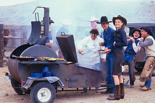 We also found this lovely photograph of Angela Lindvall photographed by Arthur Elgort with a group of cowboys for a cookout in its original ensemble, photographed for the 1998 February issue of Vogue