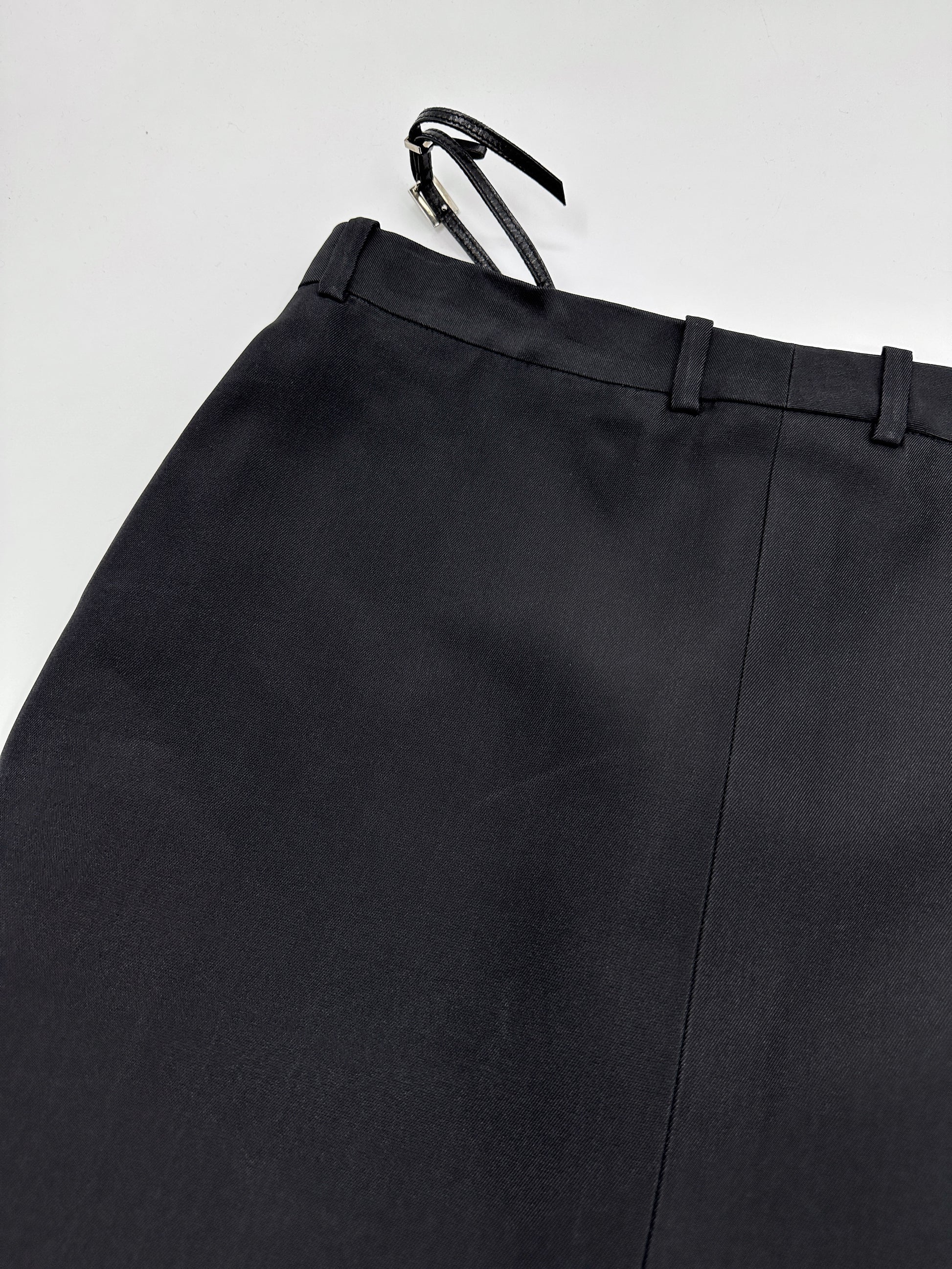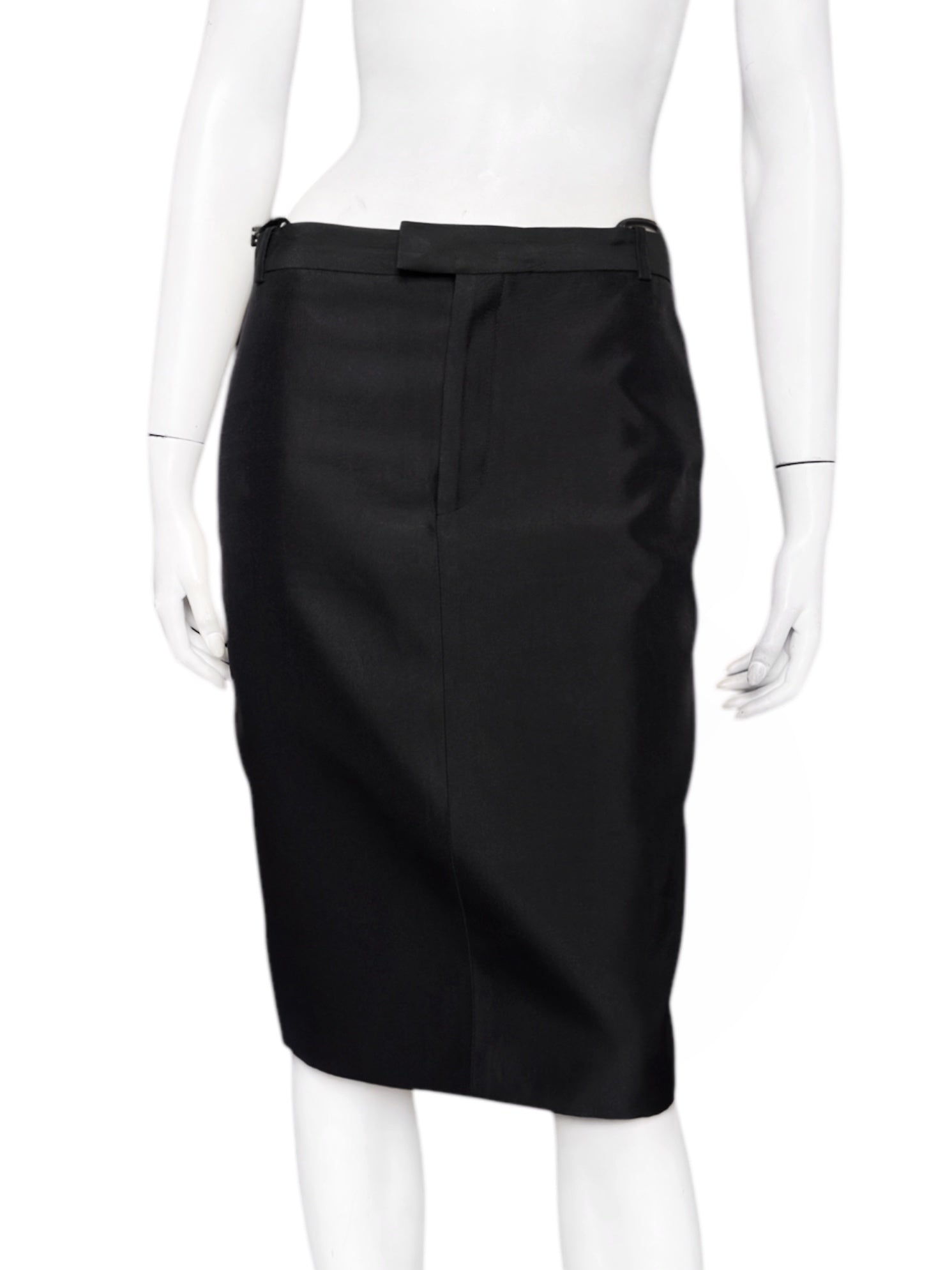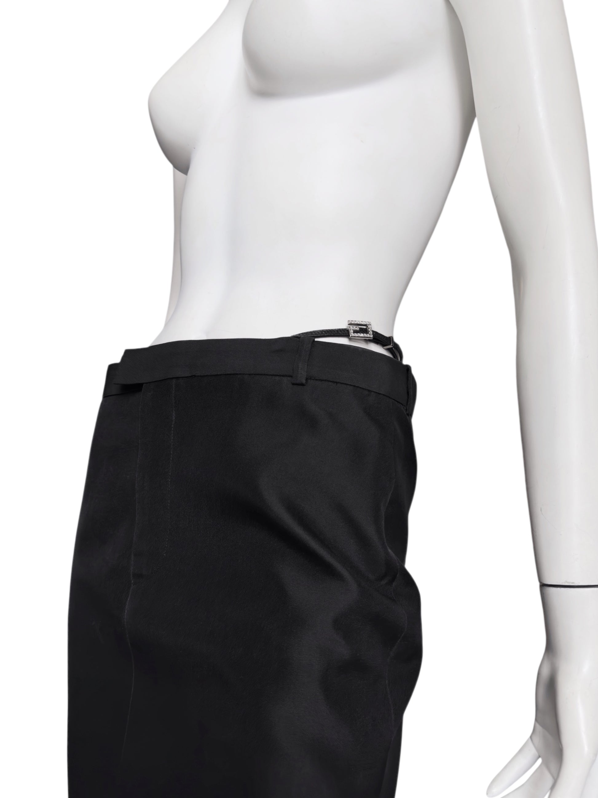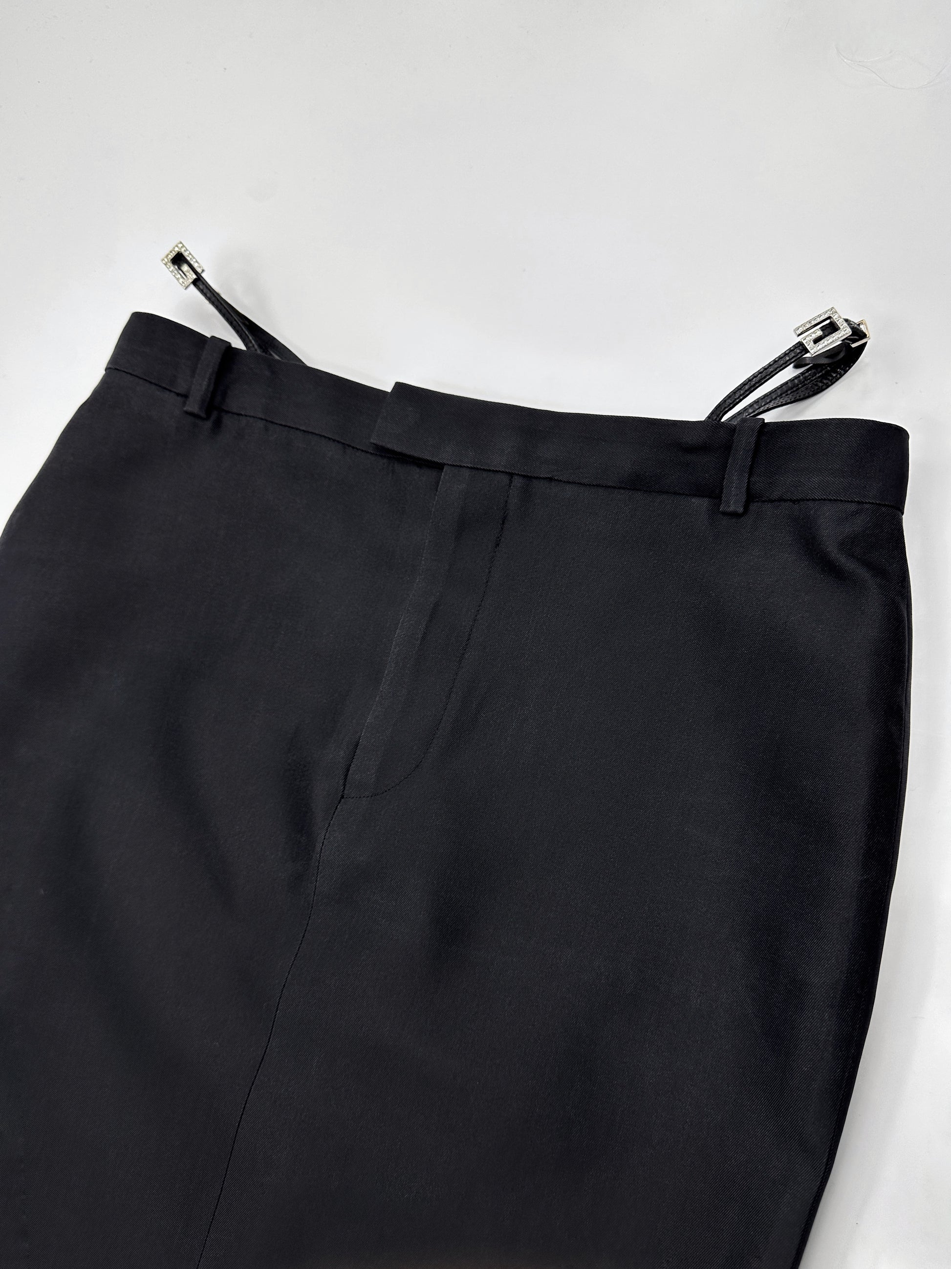 Gucci Spring 1998 Tom Ford Look #38 Swarovski G-String Leather Strap Black Pencil Skirt 42