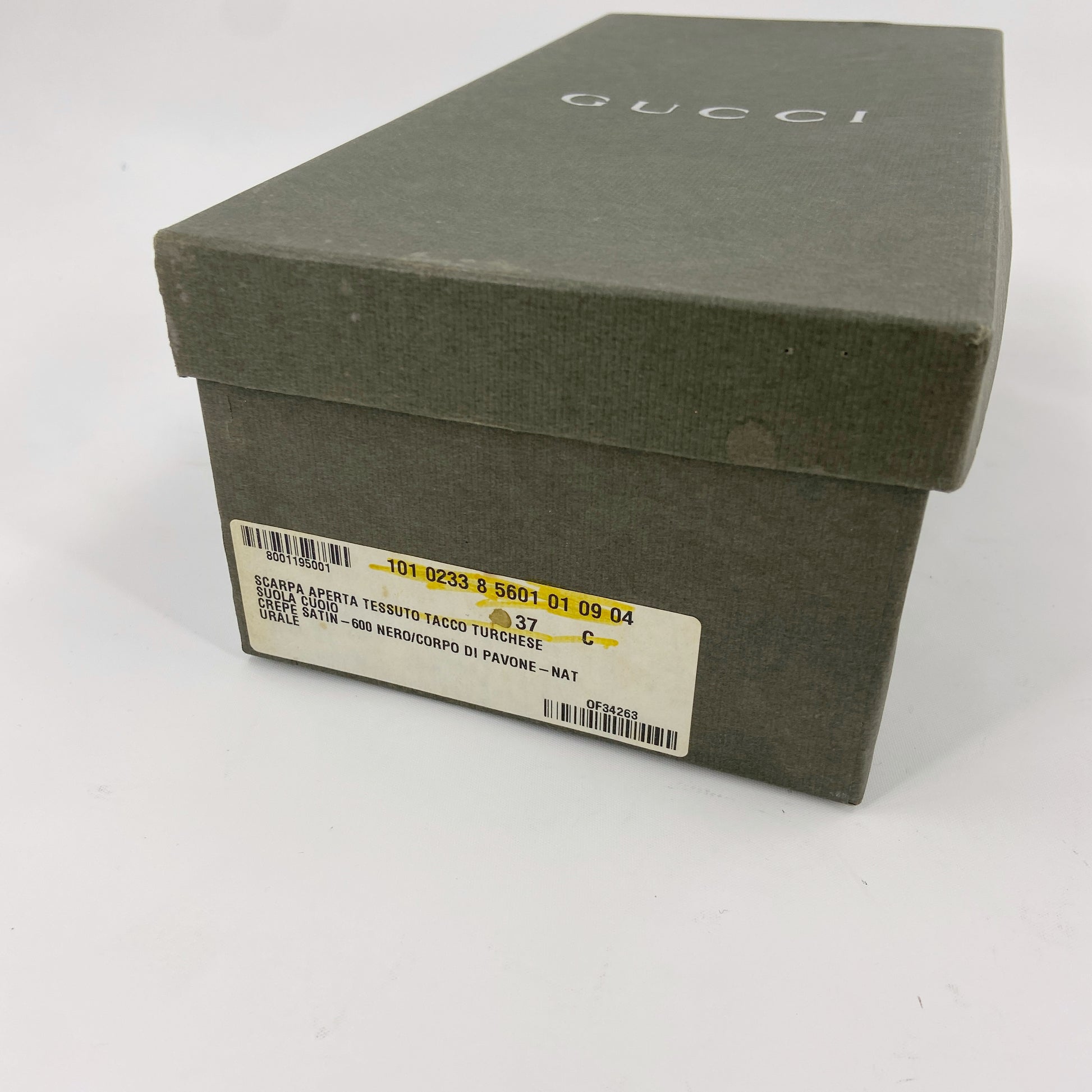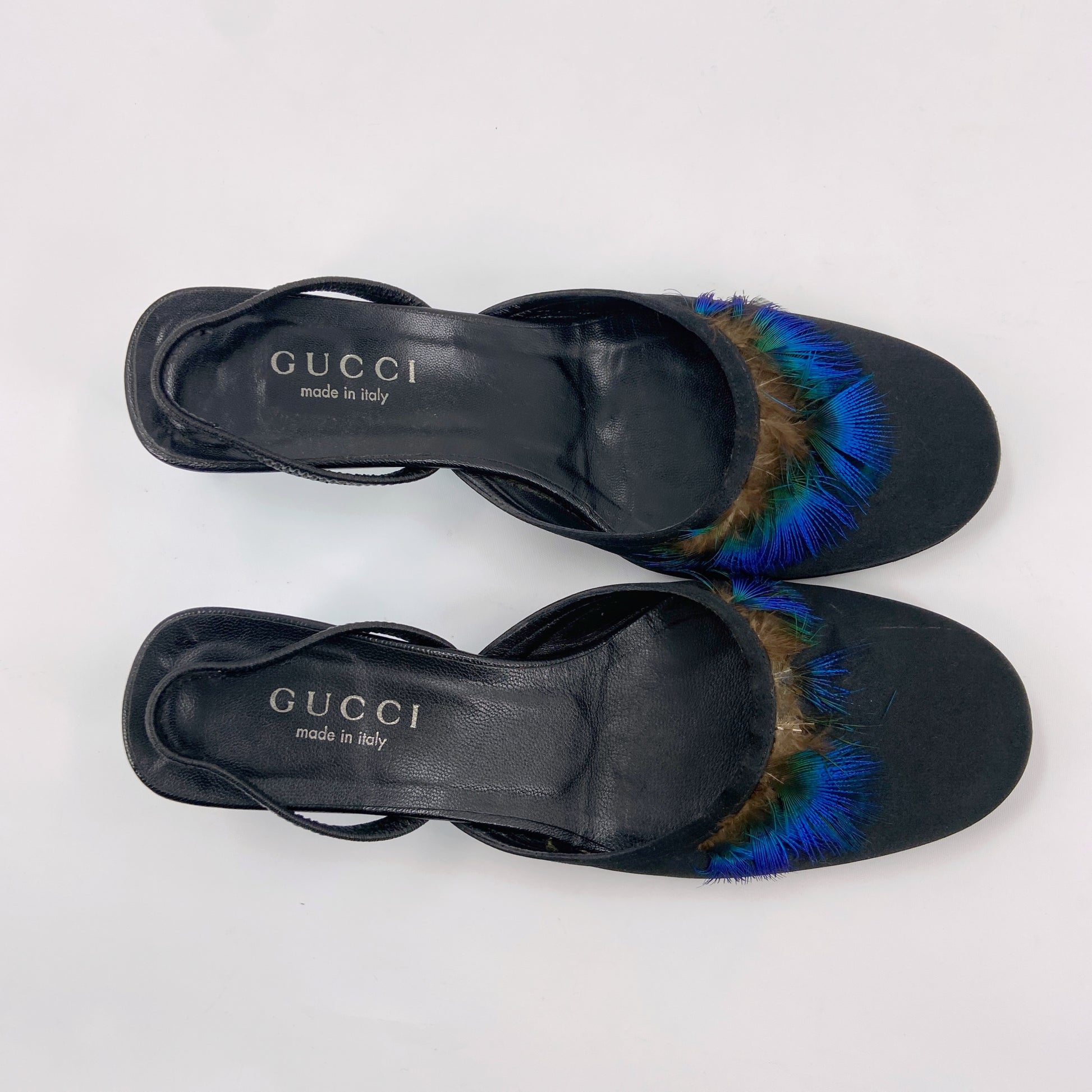 Gucci Spring 1999 Feather Embossed Satin Slingback Mules 37