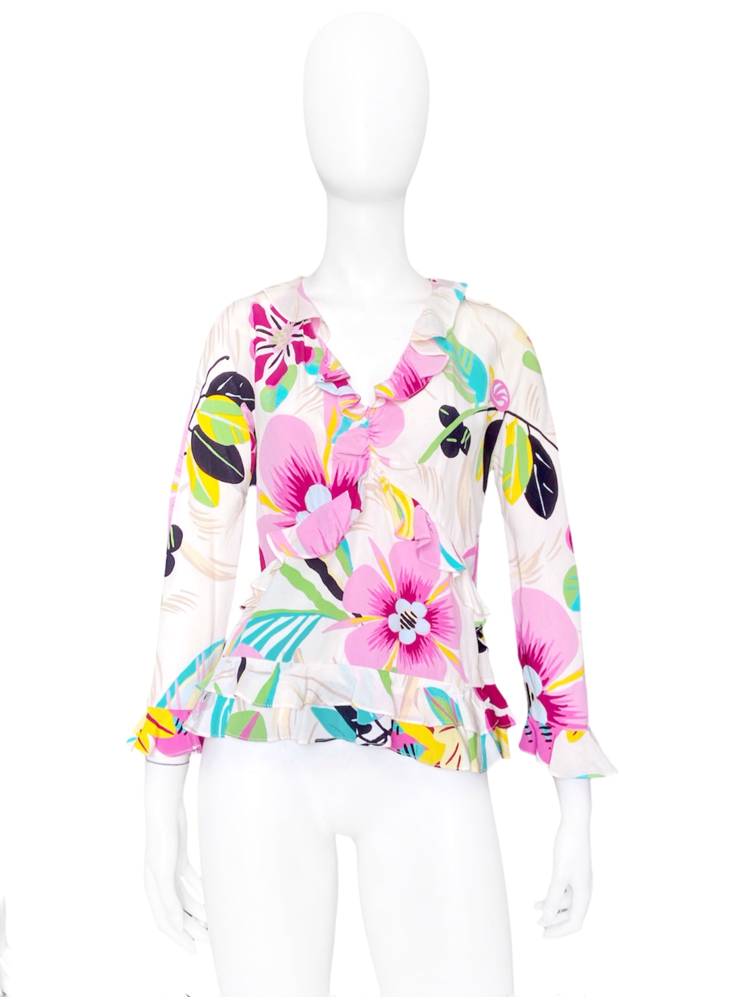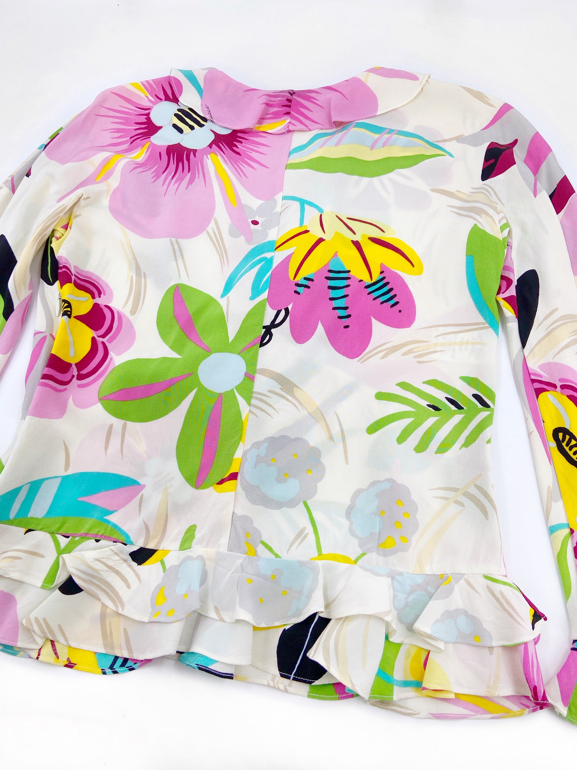 Gucci Spring 1999 Tom Ford Iconic Runway Ivory Floral Silk Ruffle Blouse Top 38