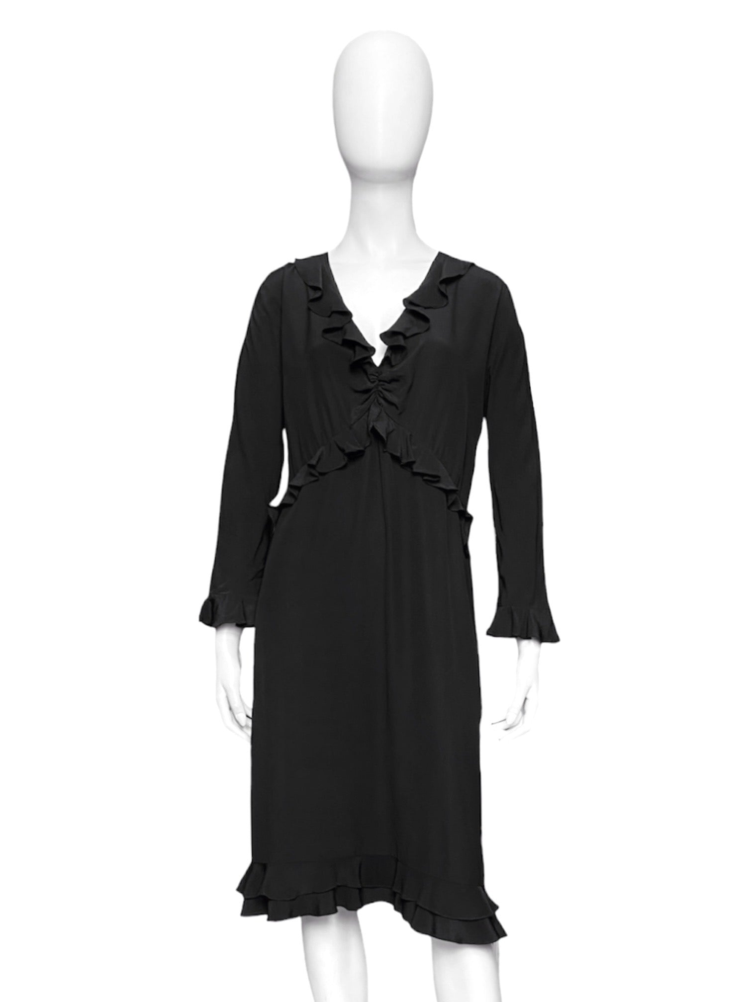 Gucci Spring 1999 Tom Ford Runway #1 Look Black Silk Ruffle Dress 40