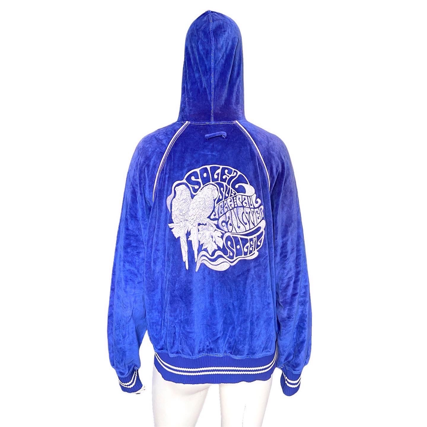 A chic oversized jacket from gaultier, with yhe print that was introduced to gen z with the hit show euphoria on Kat, soft velvet material with lining, front pockets, double zippers and drawstrings. Super Chill. Mint condition.
