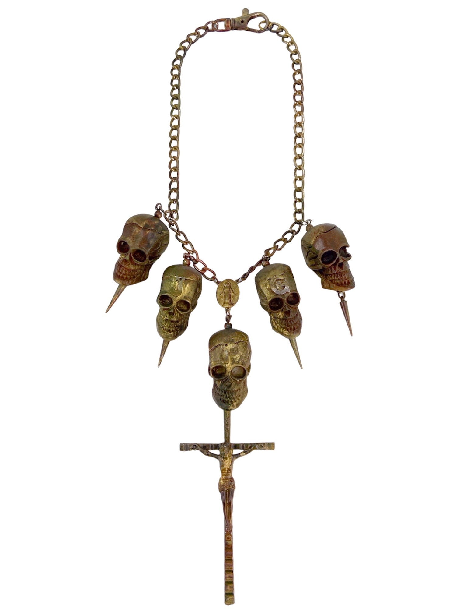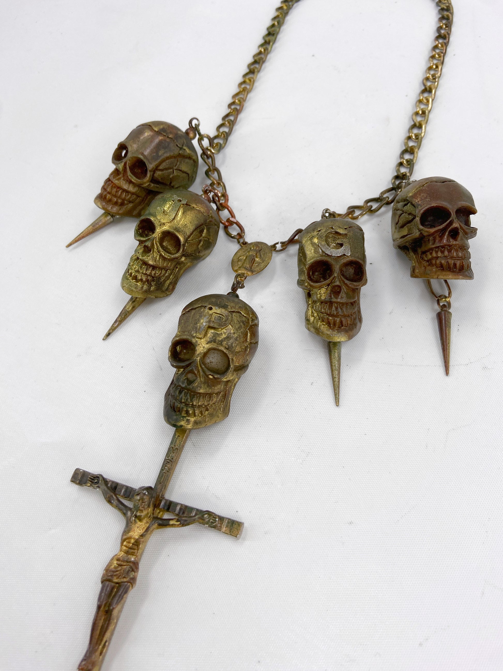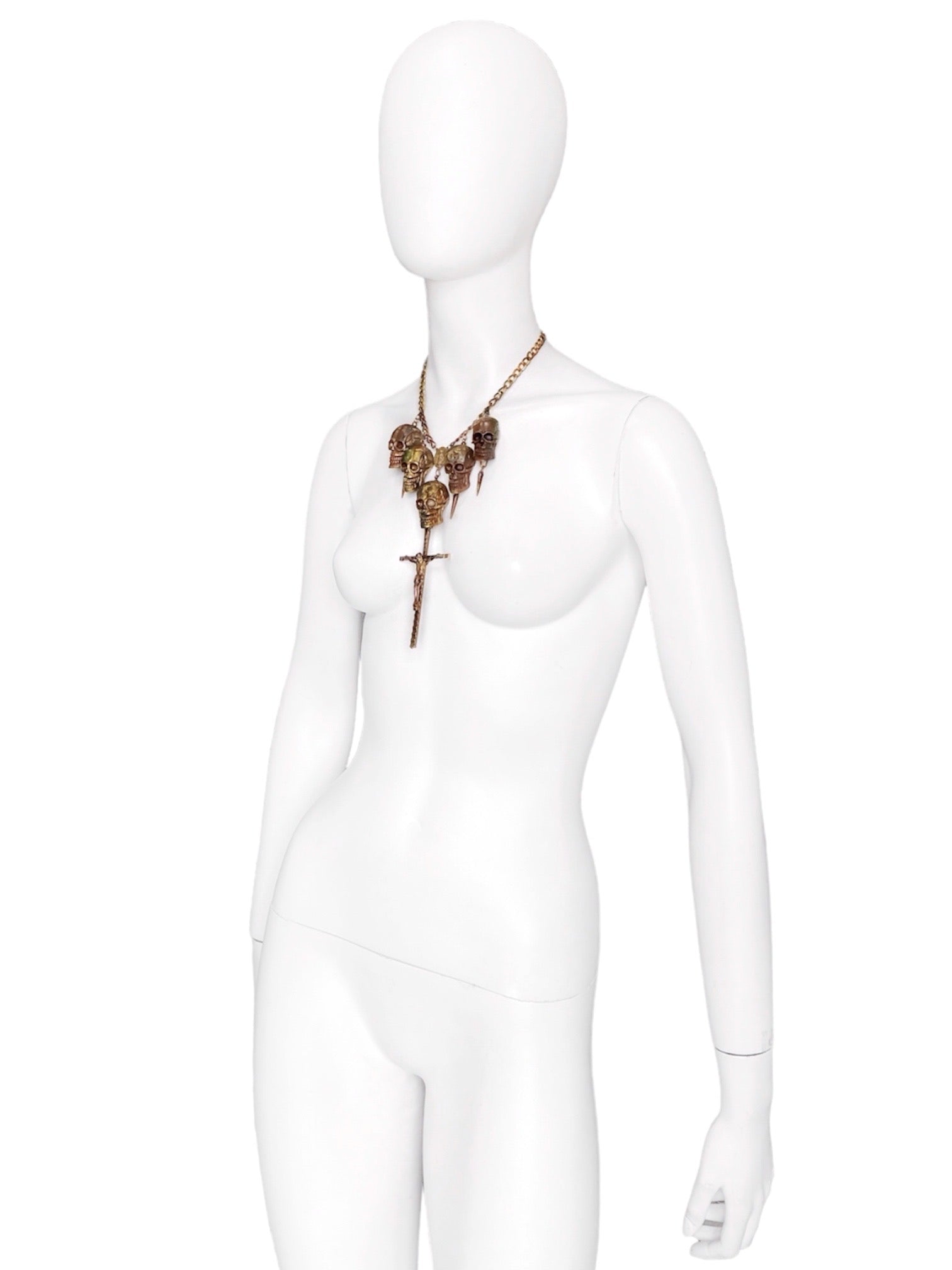 Jean Paul Gaultier 90S Sample 1/1 Gothic JPG Logo 5 Skull Crucifix Cross Chain Necklace