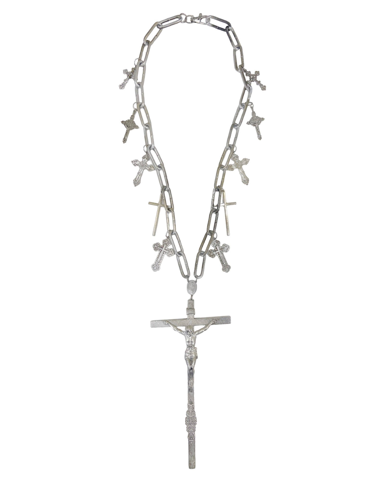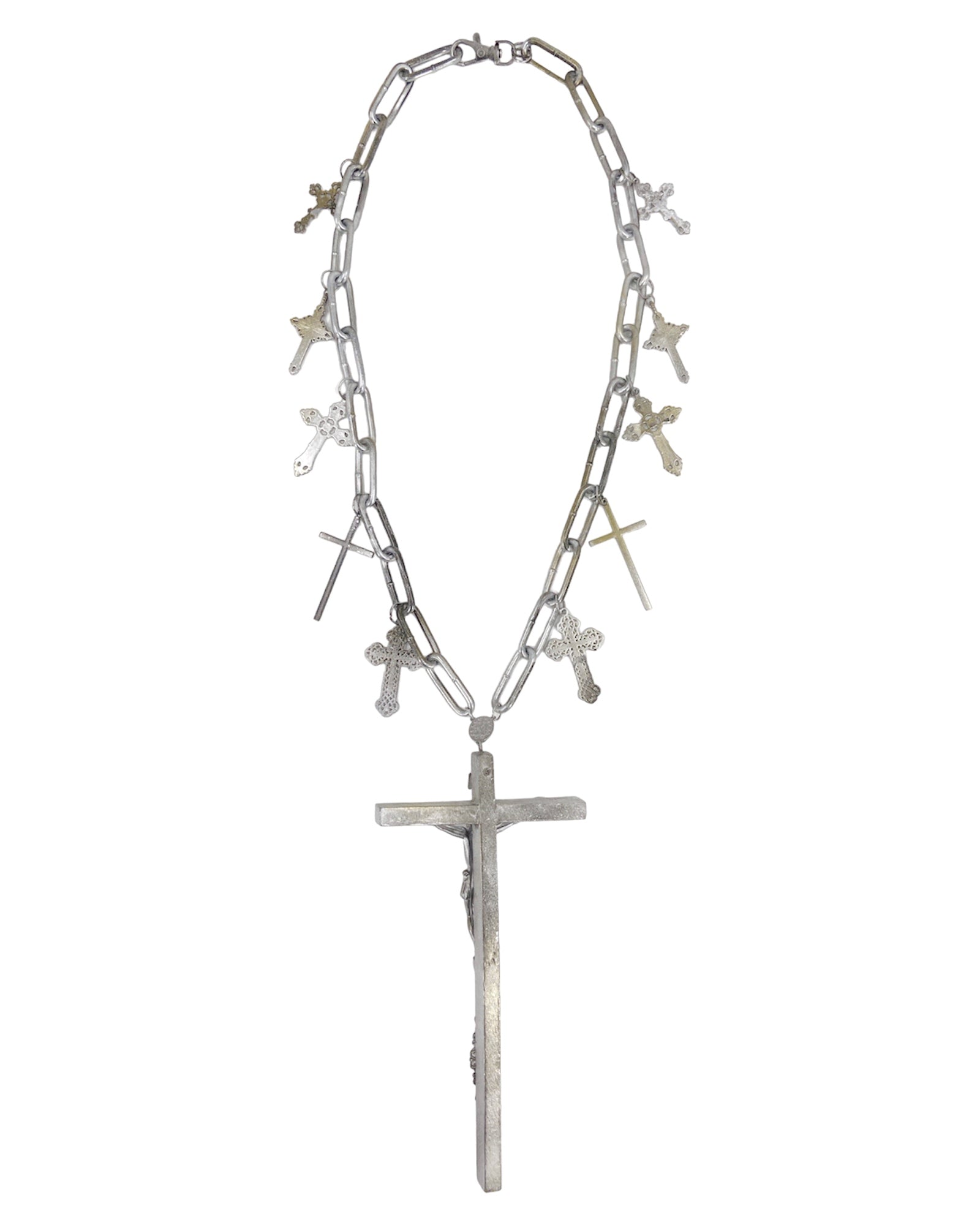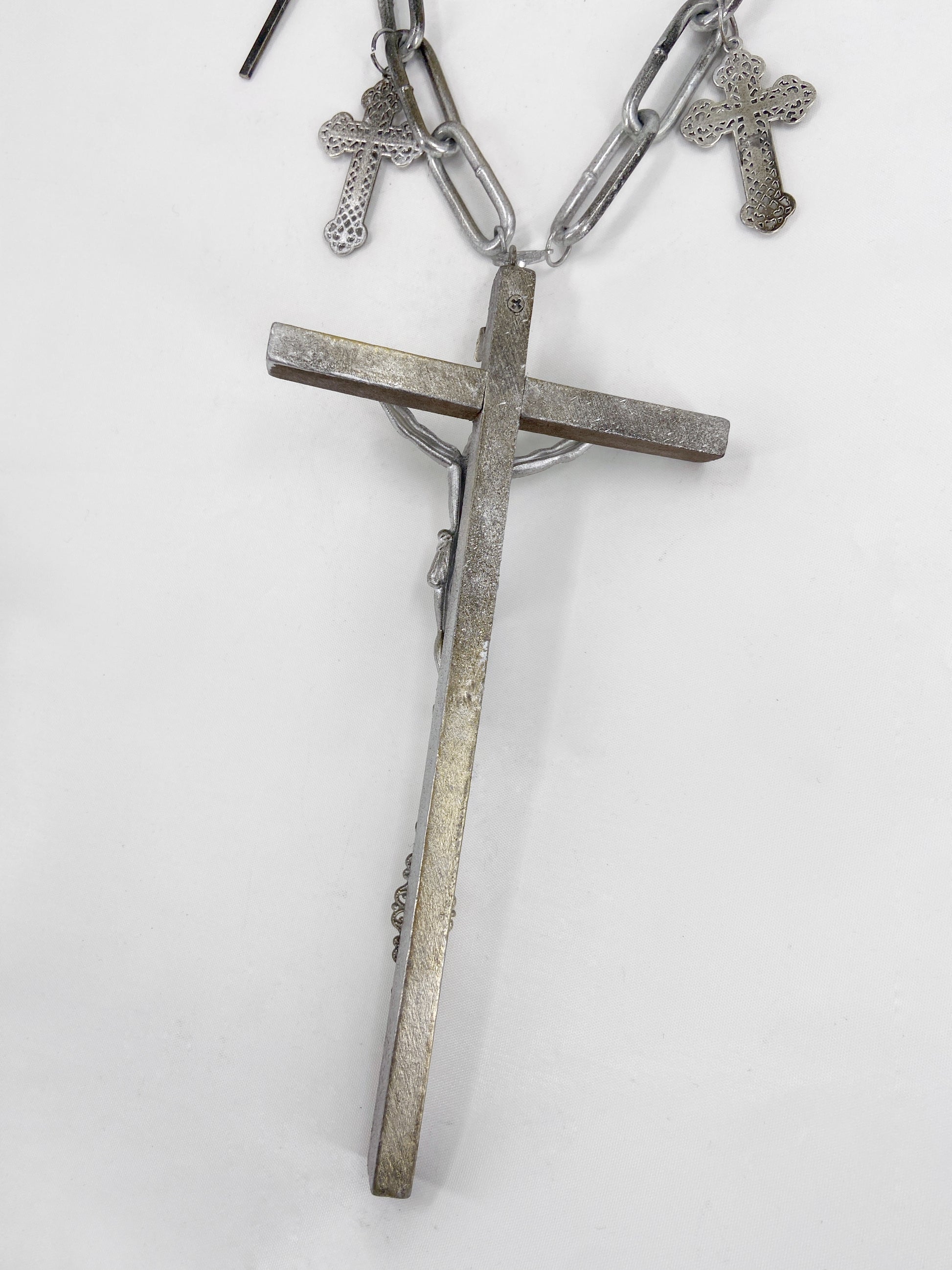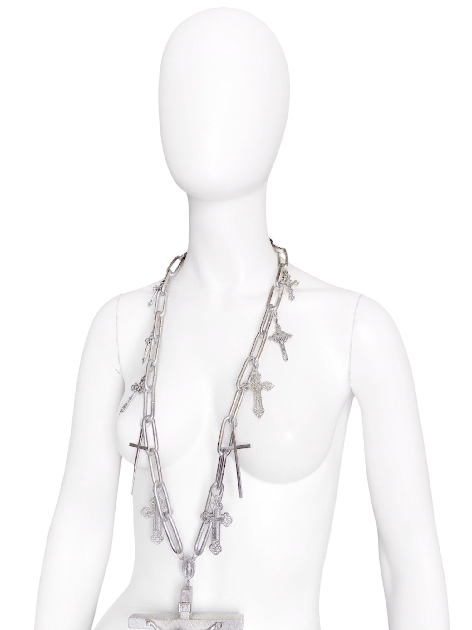 Jean Paul Gaultier 90S Sample 1/1 XXL Silver 11 Crucifix Cross Chain Necklace