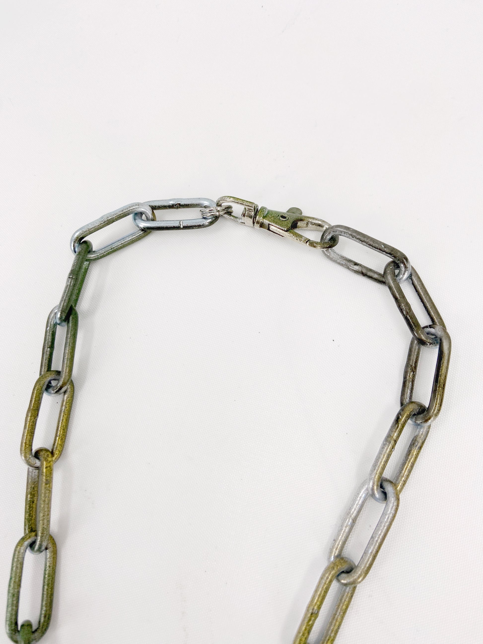 Notably the necklace is laid flat and airbrushed, giving the piece a antique look with uneven finish with some parts of the necklace is still black