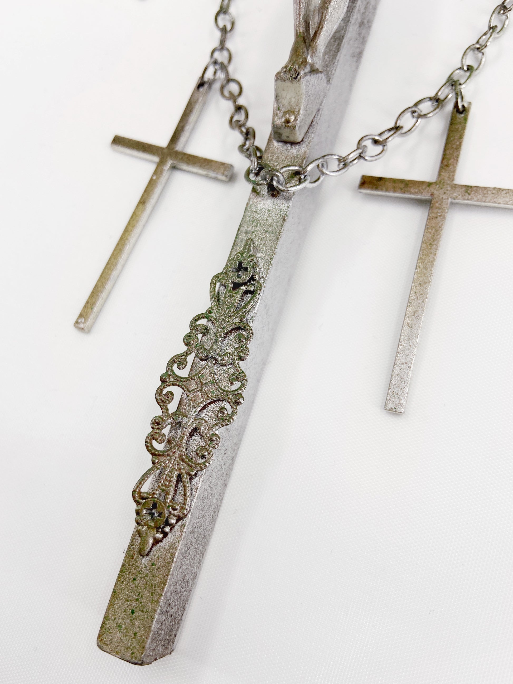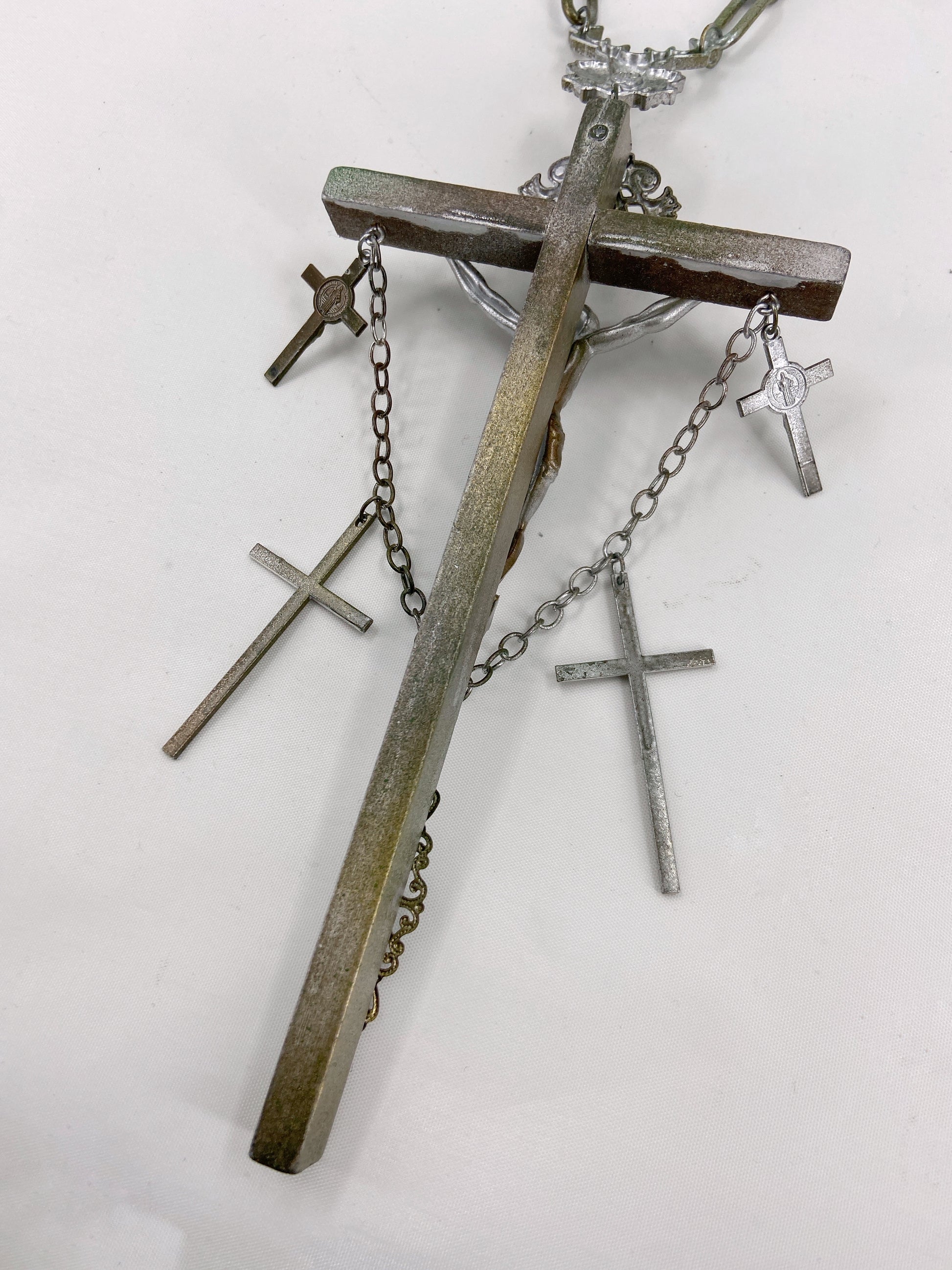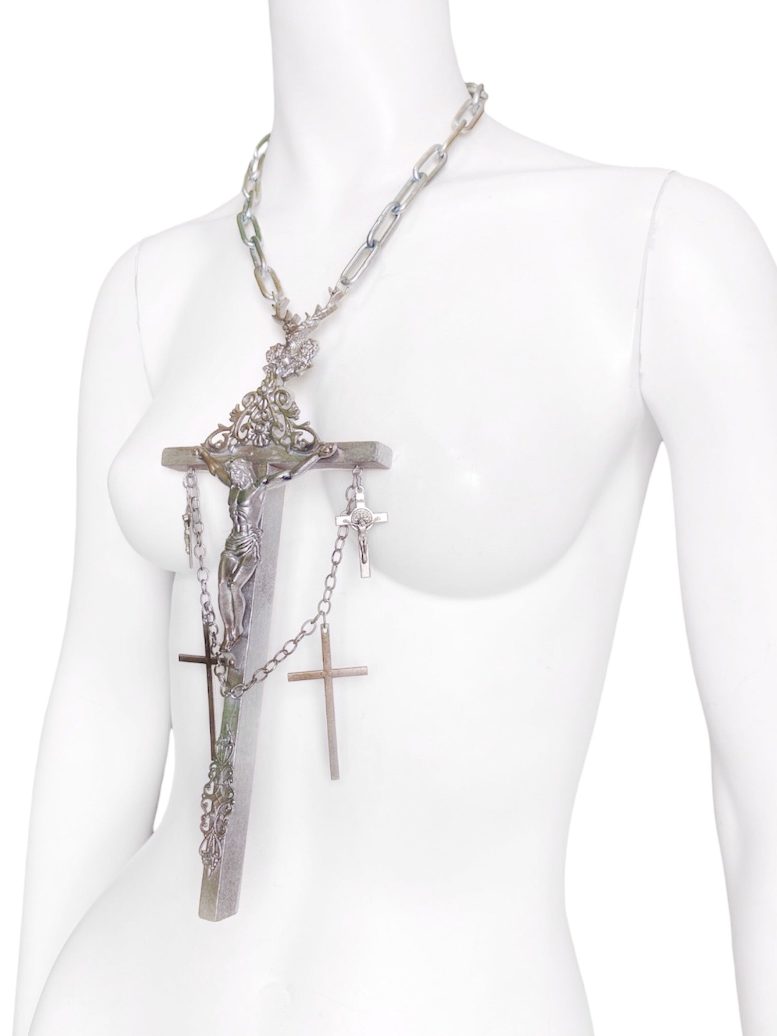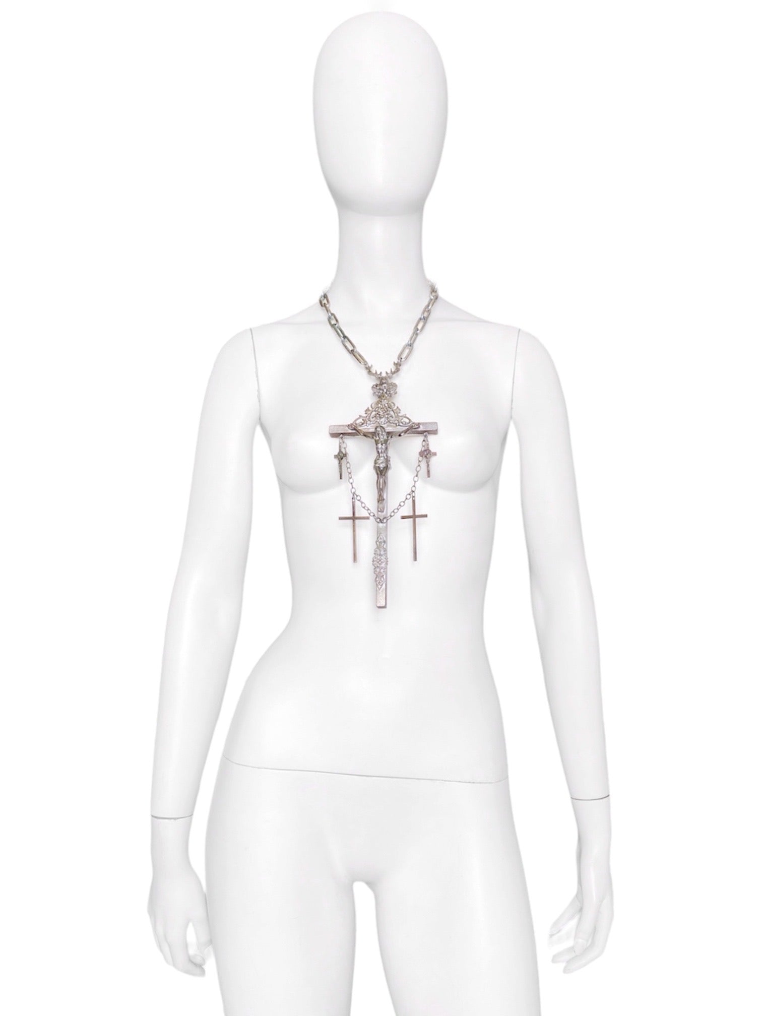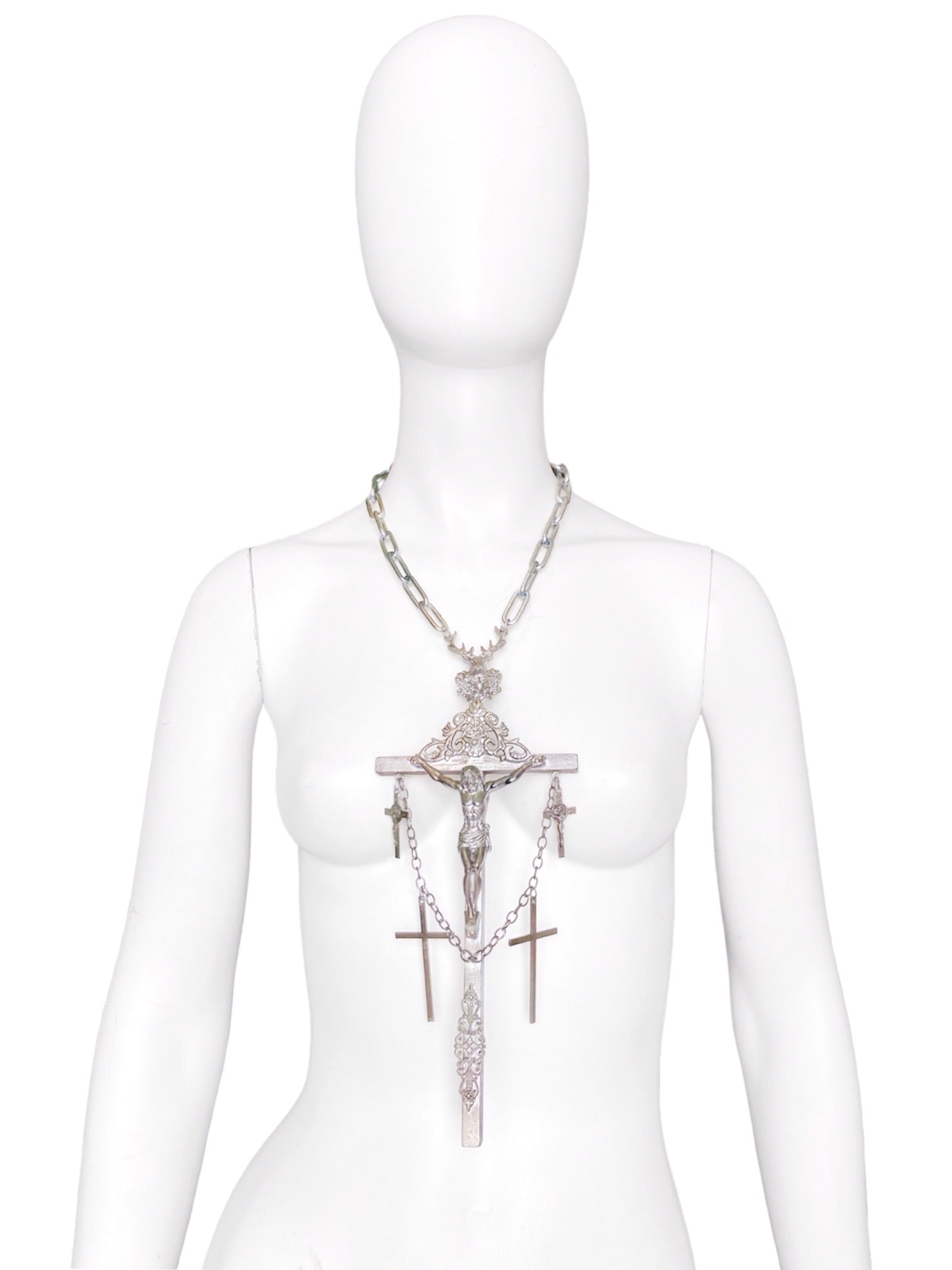 Jean Paul Gaultier 90S Sample 1/1 XXL Silver 5 Crucifix Cross Deer Chain Necklace