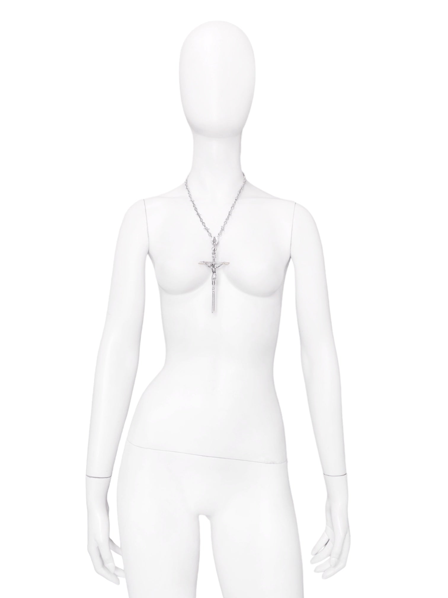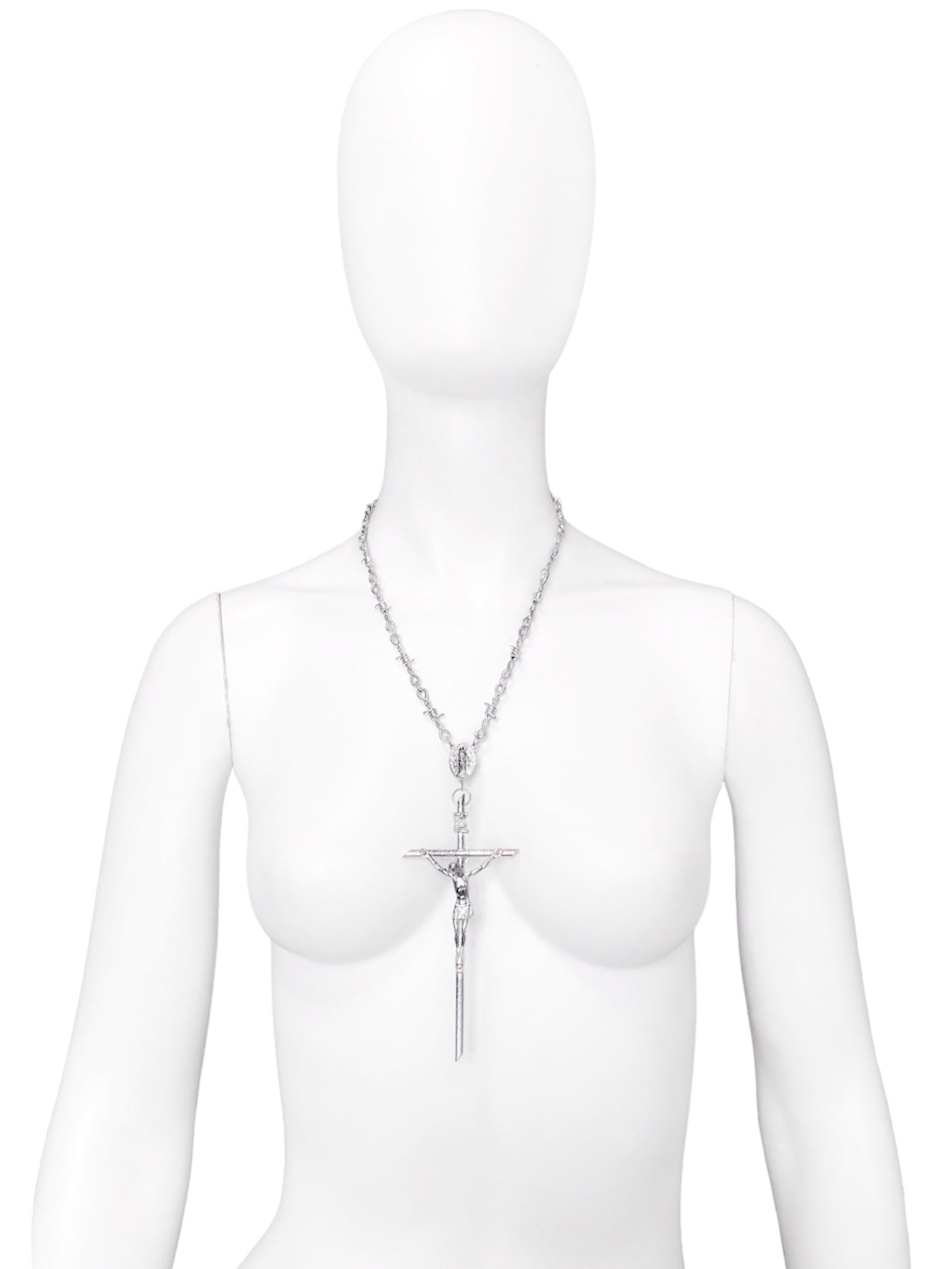 Jean Paul Gaultier 90s Sample Silver Barbed Wire Cross Chain Necklace