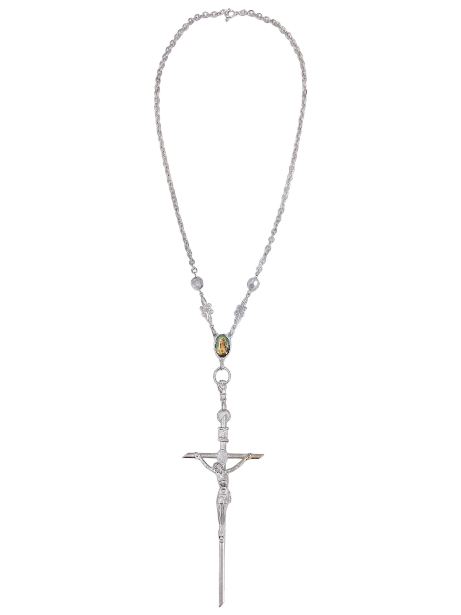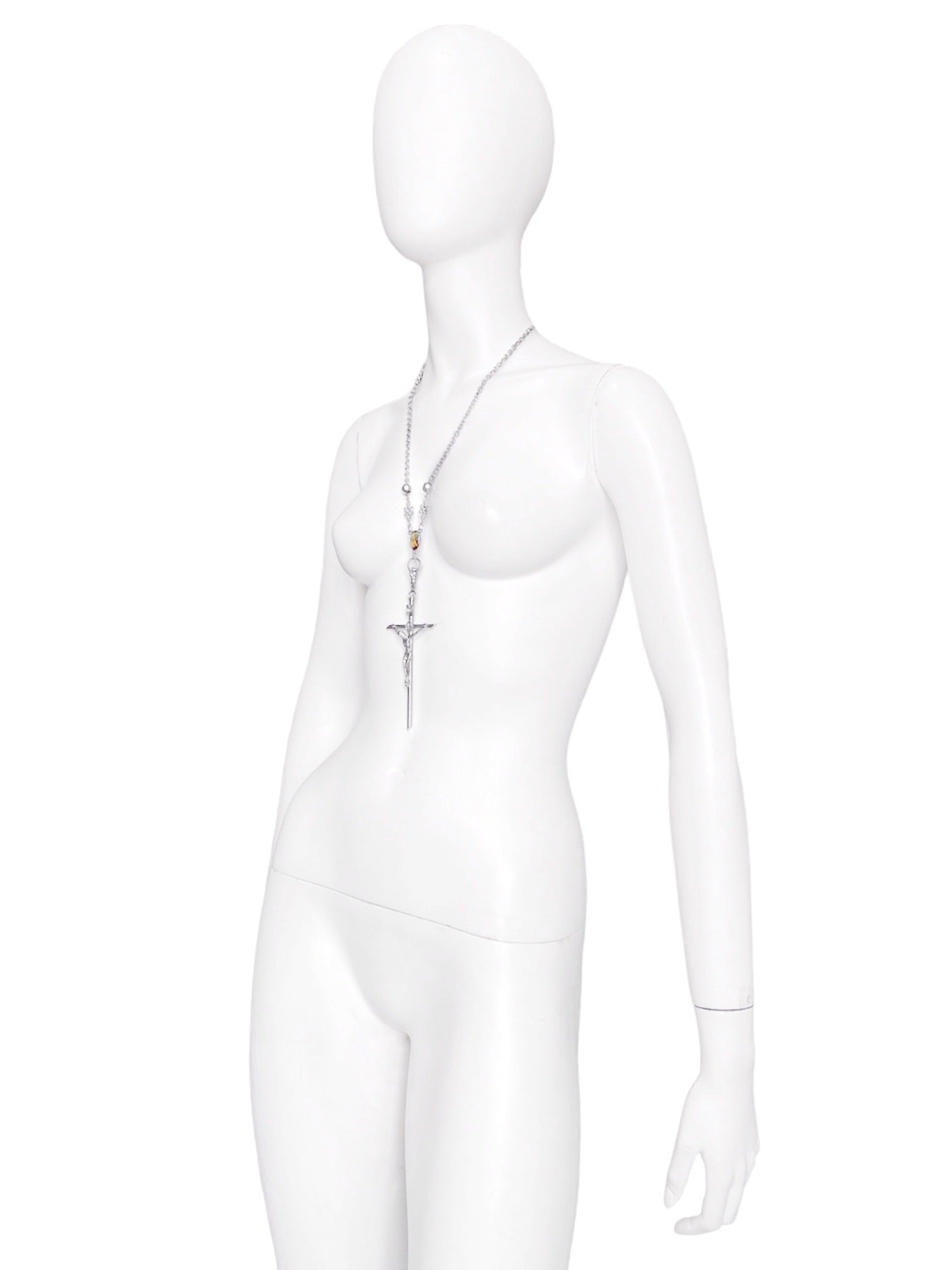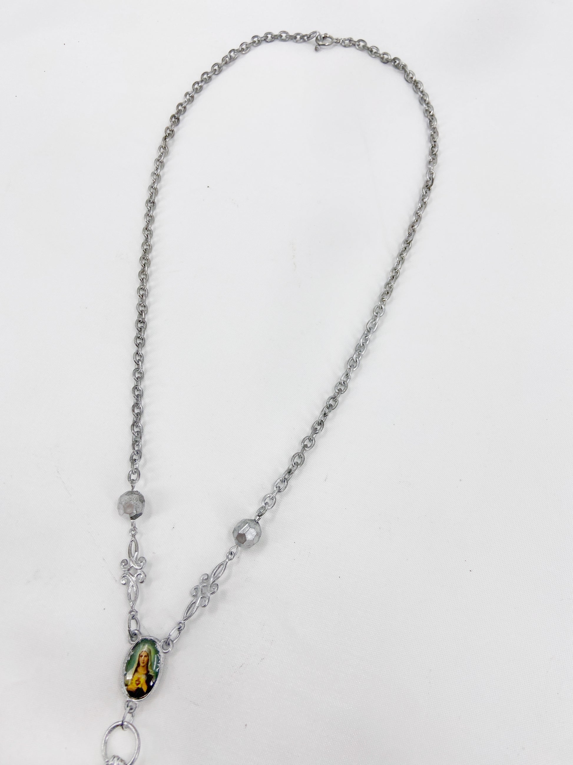Jean Paul Gaultier 90s Sample Silver Virgin Mary Cross Chain Necklace