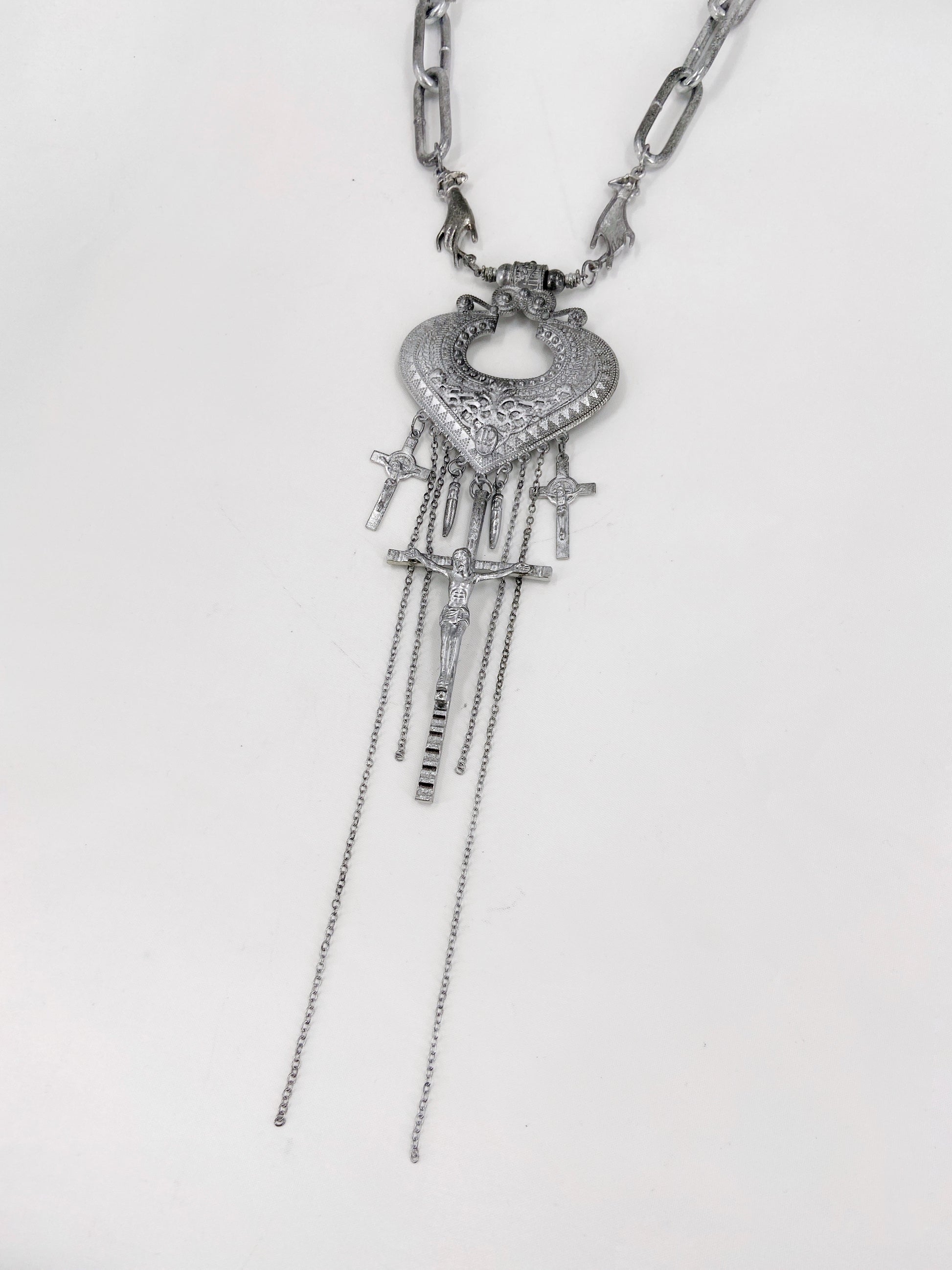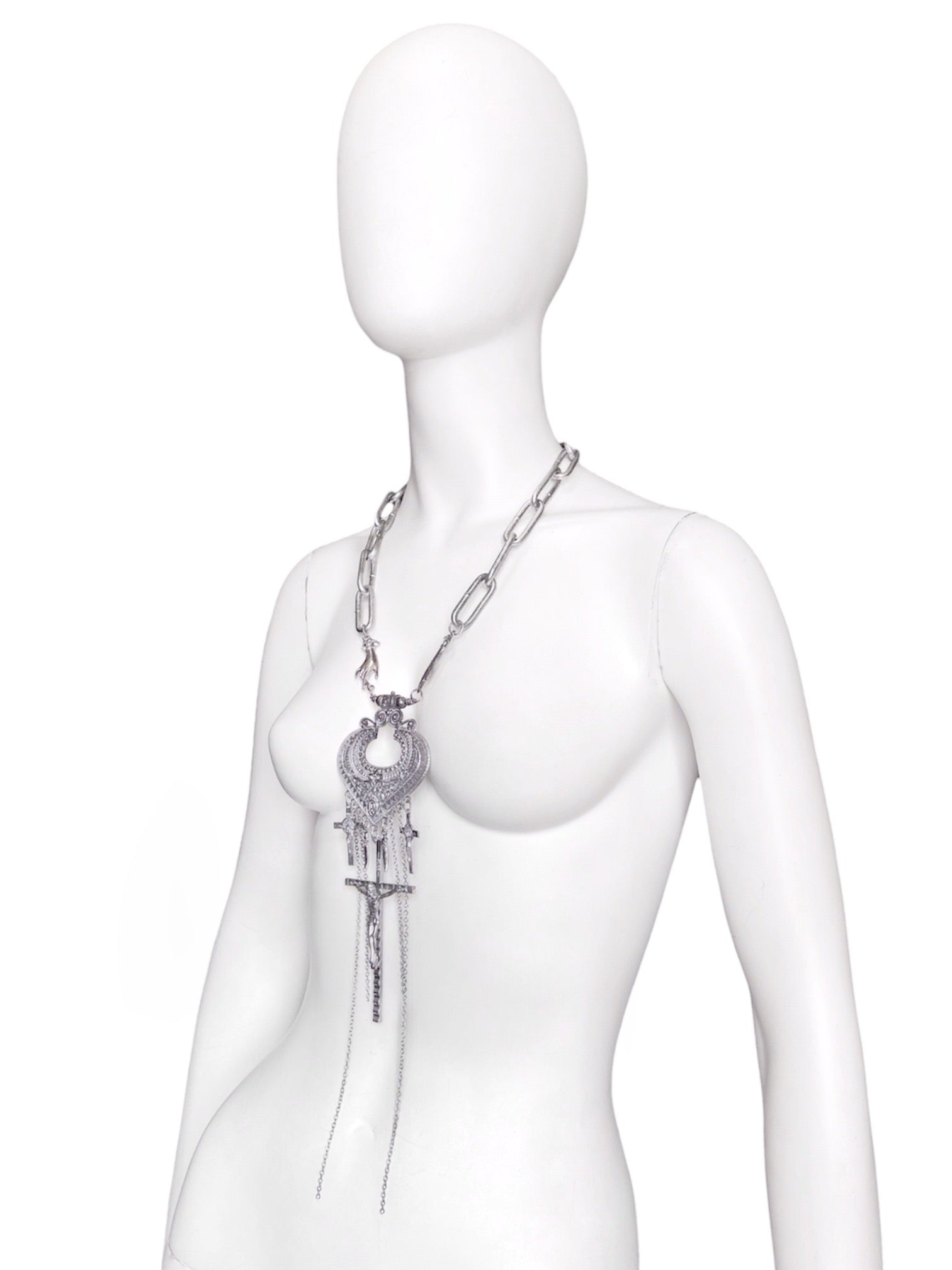 Jean Paul Gaultier 90S Sample Spade Chain Fringe Triple Crucifix Cross Chain Necklace