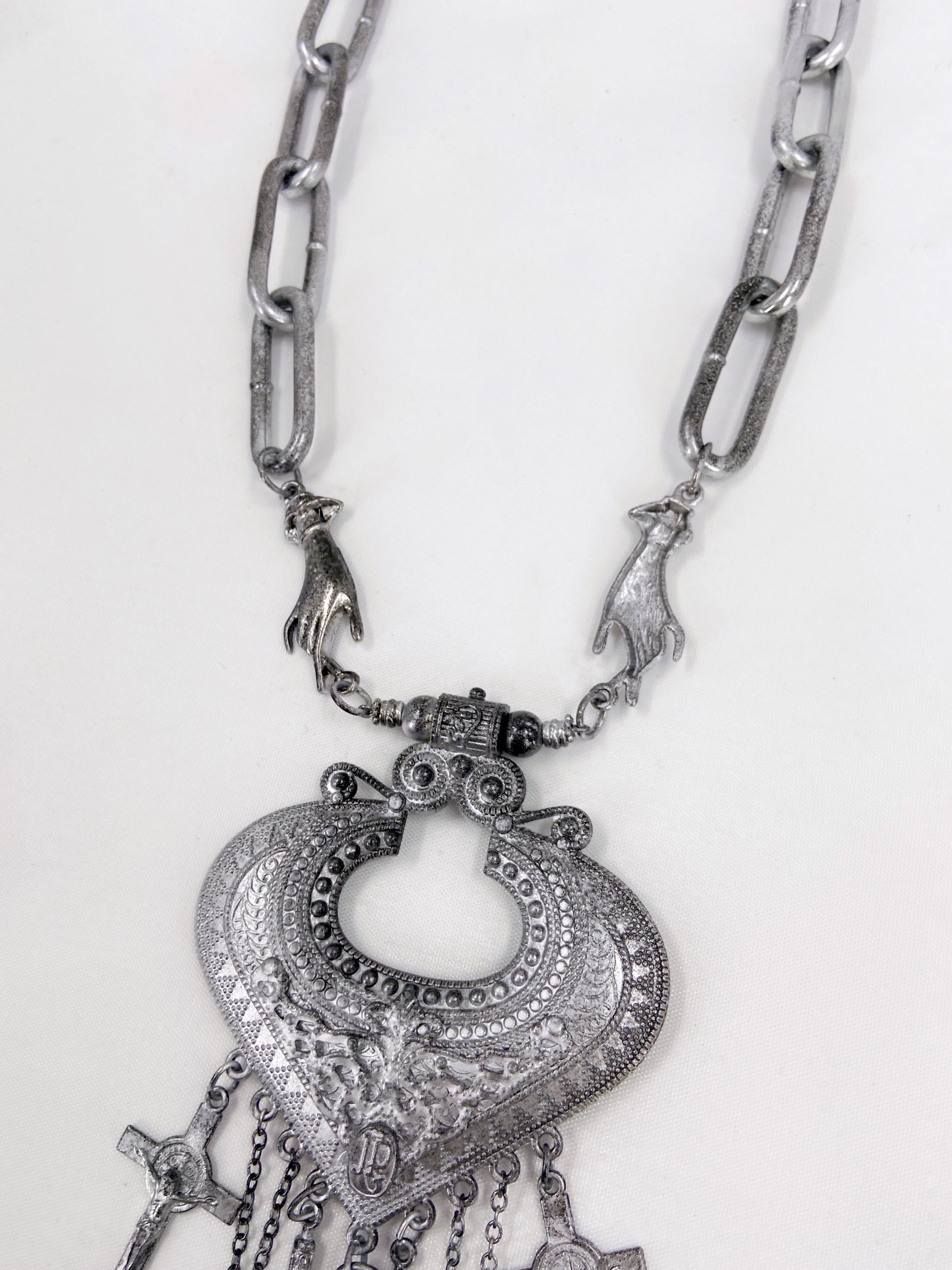 Notably the necklace is laid flat and airbrushed, giving the piece a antique look with uneven finish with some parts of the necklace is still black