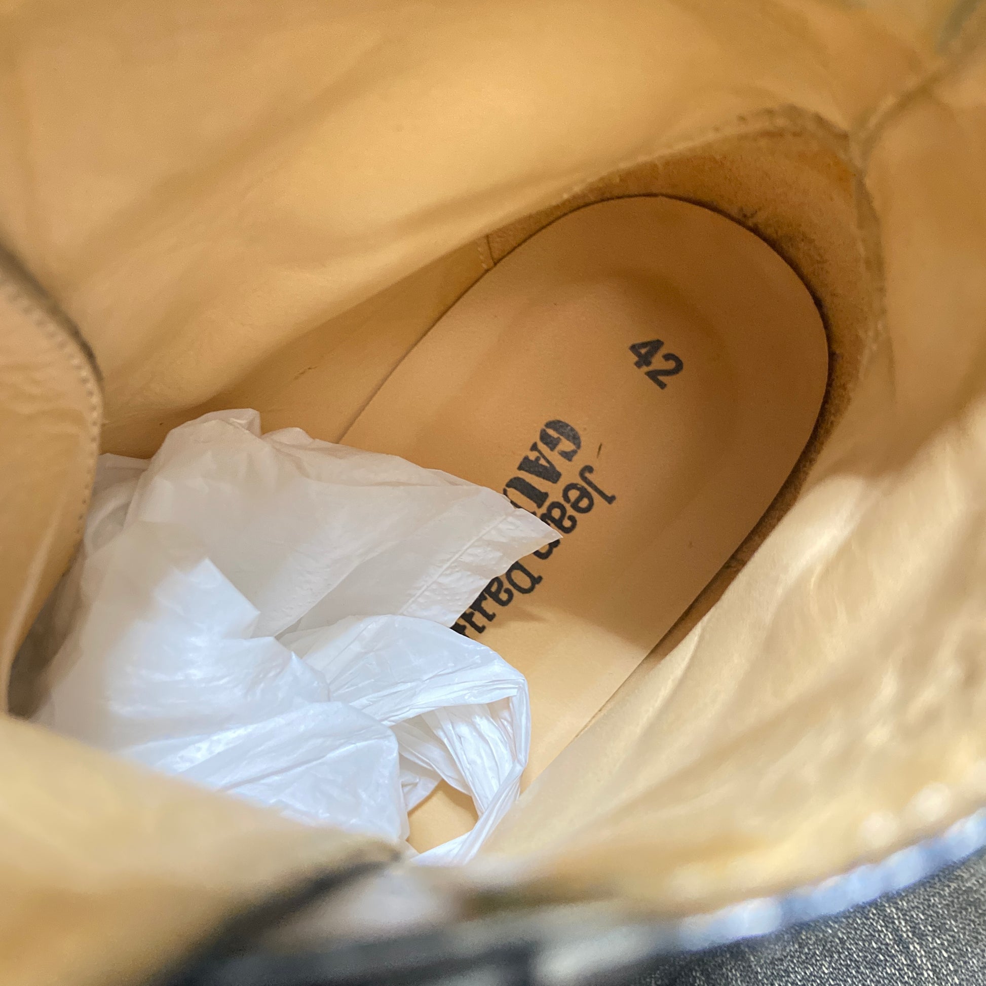 An absolutely stunningly pair of platform boots for guys. Inspired by Michael Jacksons dance shoes but its Gaultier so its added a few inches higher. Debuted on the runway as the collection is dedicated to past icons and designs that were designed with their iconic individual styles. These are in great condition with less than five wears, practically no signs of wear on the sole with some minor creasing. Fits up to 43. Comes with og box.