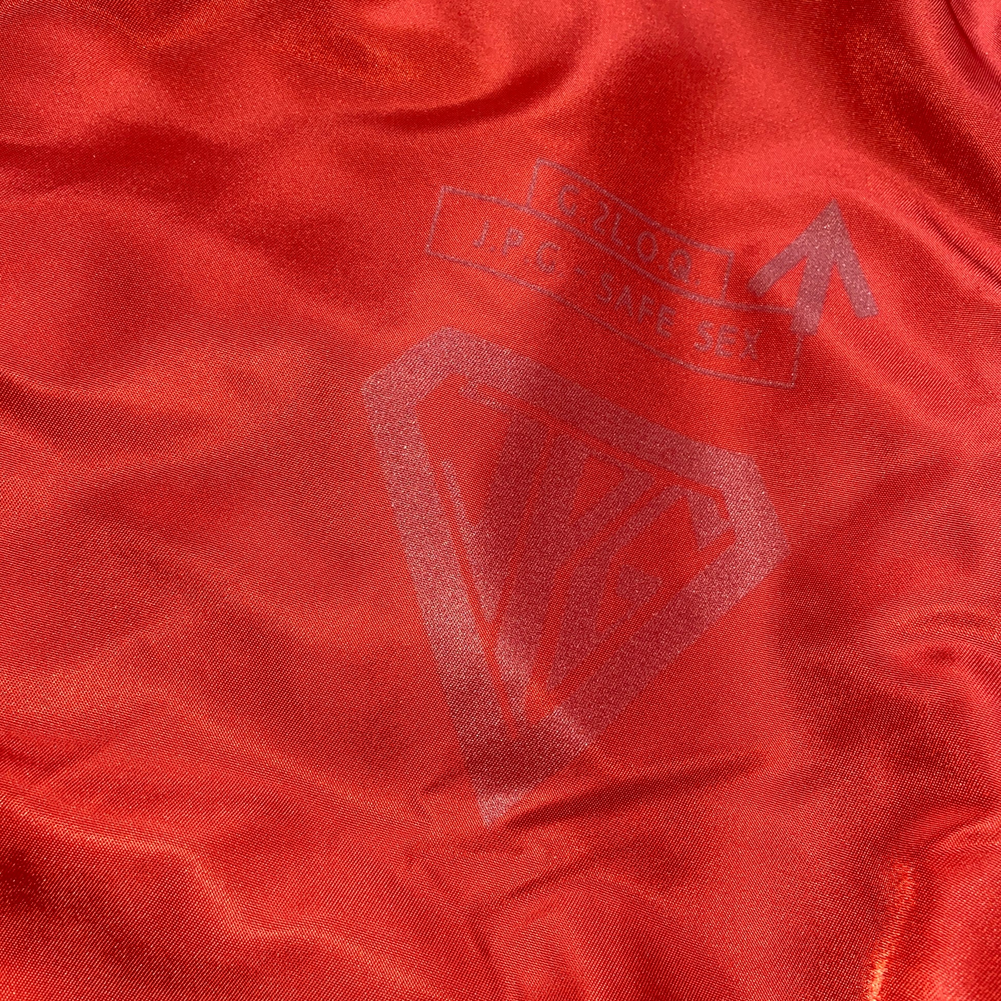 Jean Paul Gaultier ss95 “safe sex” red corset cropped bomber