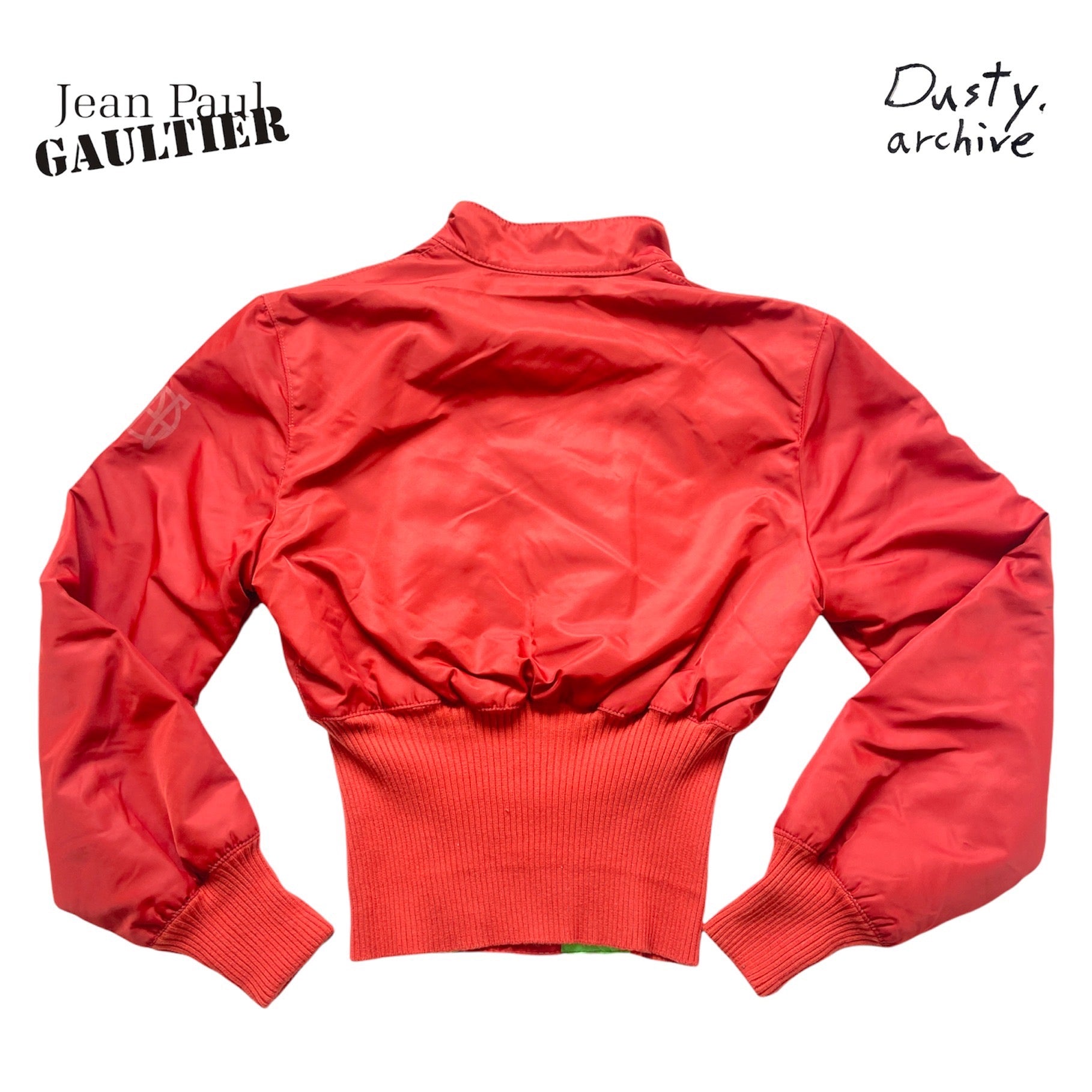 Insane piece of history from the maison of JPG, presumably fw95 ‘safe sex’ aviator bomber with extended ribbings, extremely cropped that forms the shape of a corset. Mint condition, padded lining inside. Totally insane. one snapper missing.