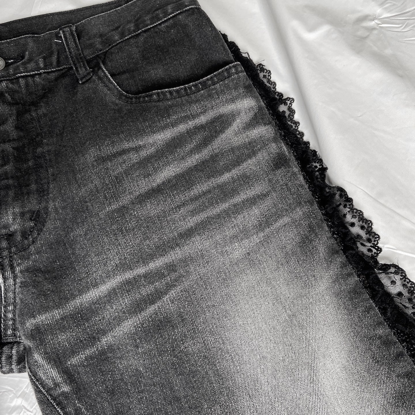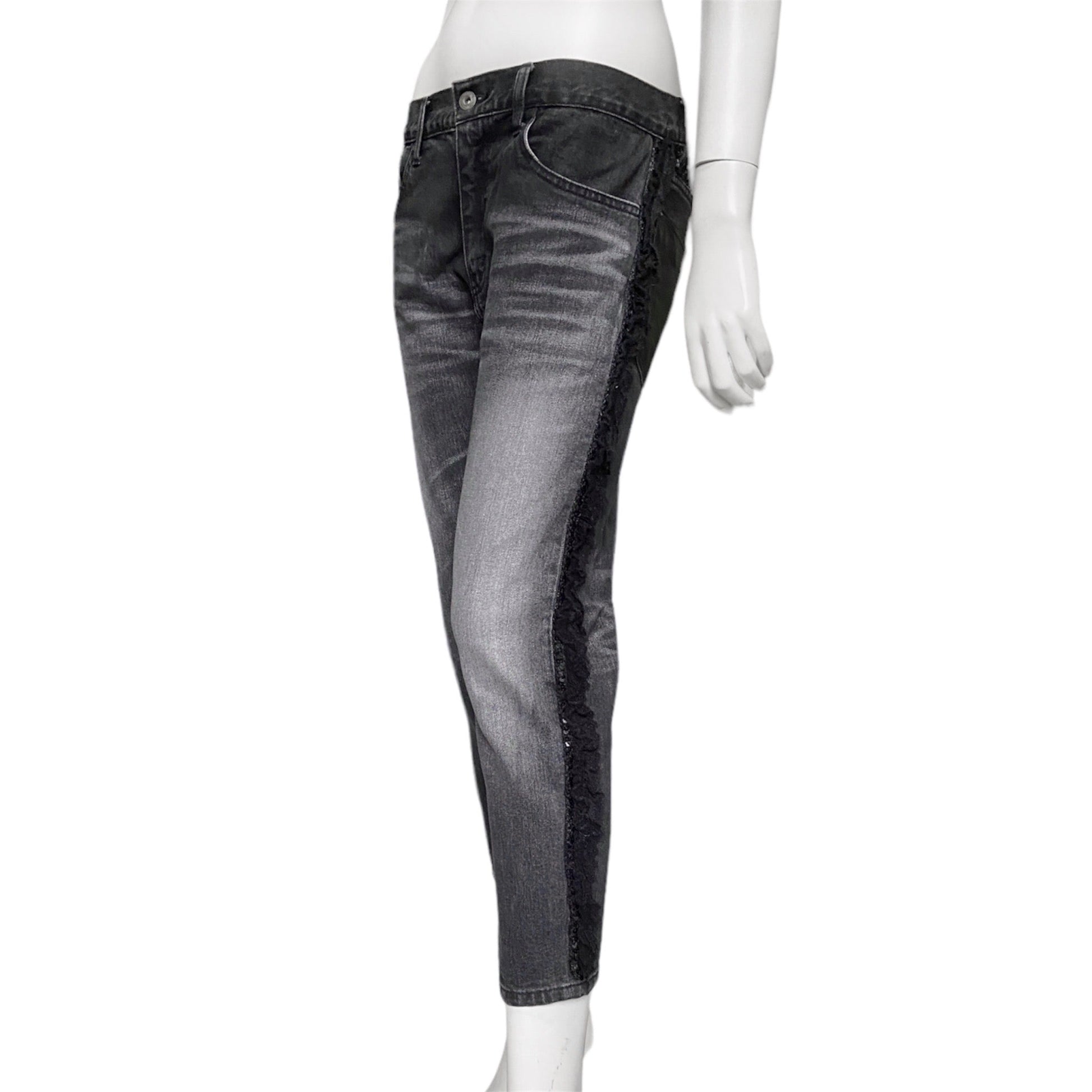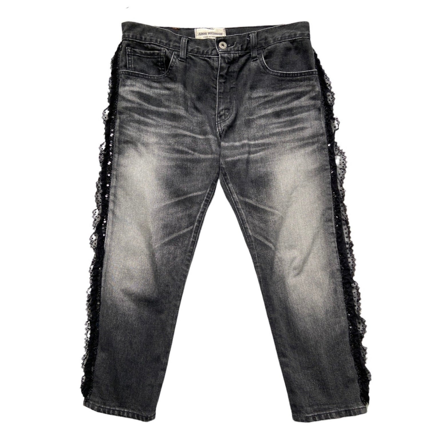 Junya watanabe comme des garçons black trompe l'oeil clawmark sequins lace jeans