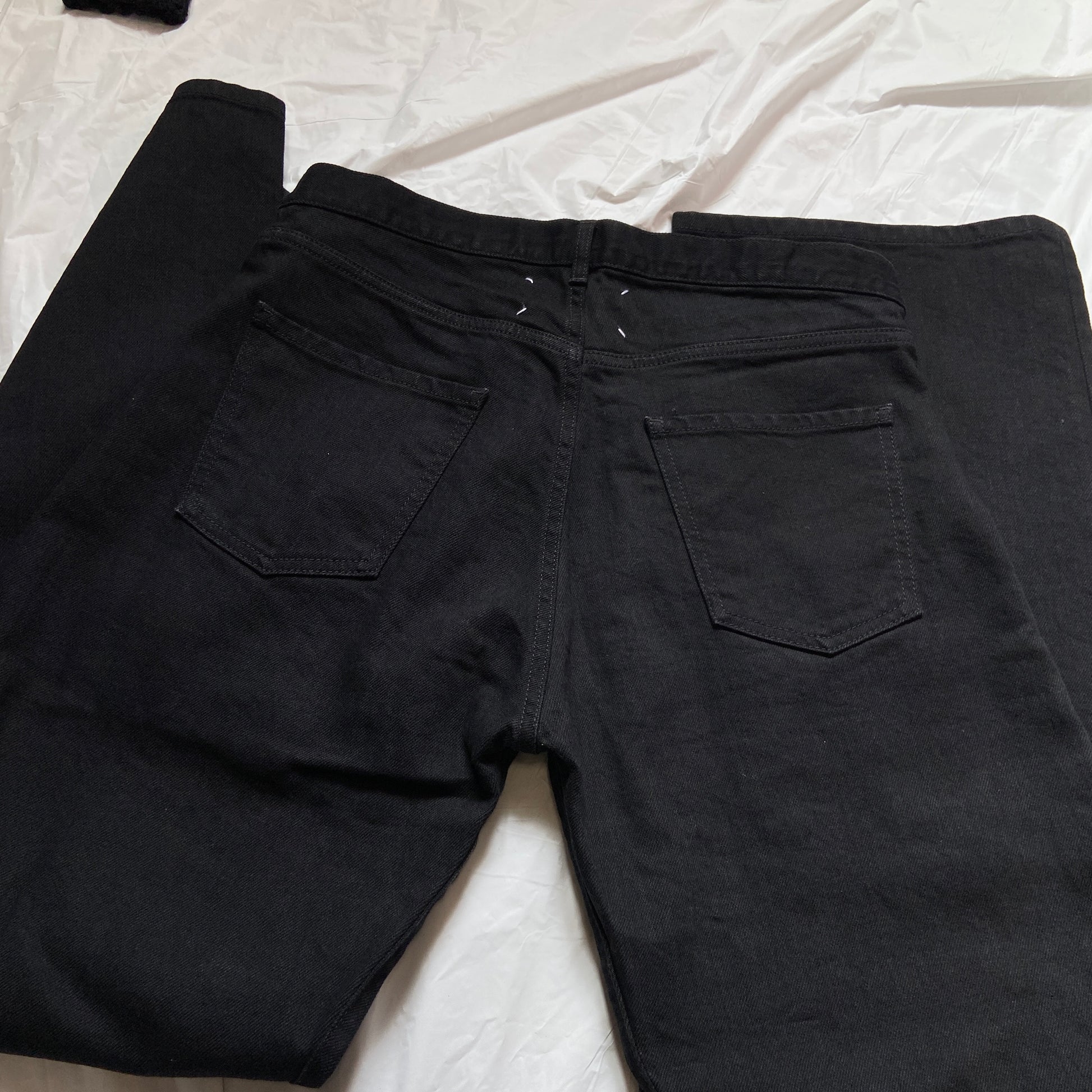 SImple pair of super baggy pants with dropped deconstructed front pockets design, extra volume that you could fit a whole even bottle in it. mint condition, no defects. The blue pair demonstrates how they lowered the pocket to create a sort of deconstructed feel to it, as to the fit, these jeans will fit a lot bigger than the blue ones since its a sz:42, a would recommend a male or anyone with 33ish waist to wear these, keep in mind these are supposed to be high waisted as well.