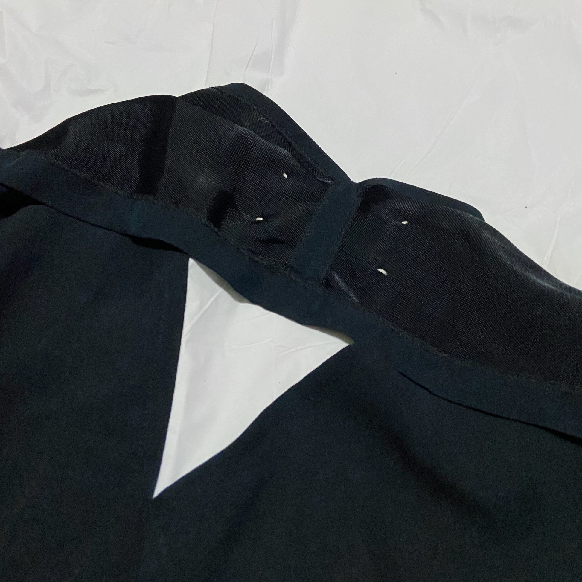 Its often hard to describe Margiela’s clothes in words, with the official description of this piece as “Jupe retroussée autour du cou pour avoir usage de top (31L025)/Skirt taken up around the neck worn as a halter top”. A great experimental piece, its quite unusual structurally. It can be worn as a midi skirt or as a dress thats missing its front, recommend pairing with some artisanal jeans or baggy pants. This piece is incredibly rare and kept in mint condition, no significant signs of use.