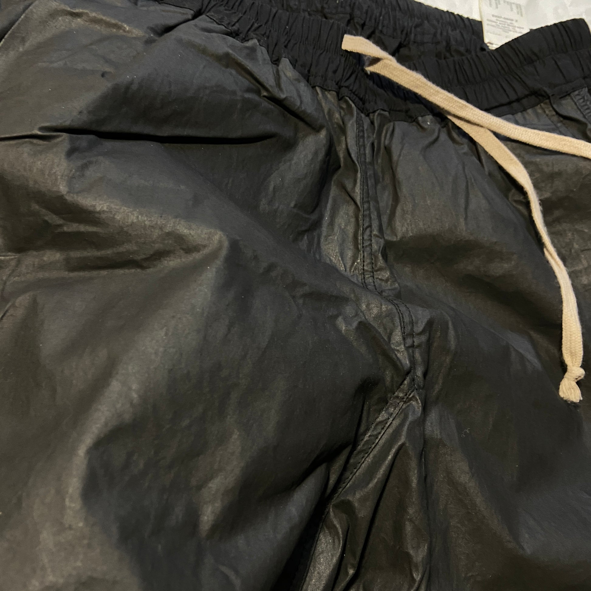 Straight from the runway, a beautifully waxed rare iteration of ricks pod shorts, featuring a flounce short with side slits that extend into wings. Kept to mint condition, side pockets and back pod pockets. Fits 29”-32”