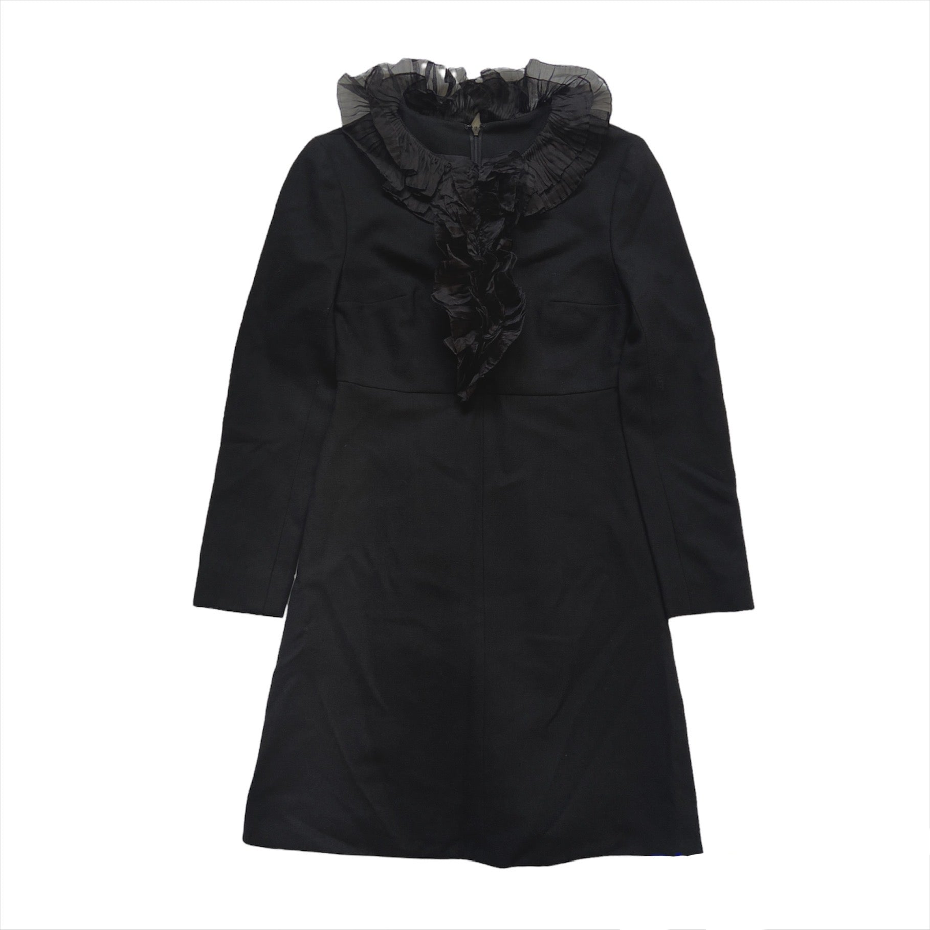 A beautiful dress from the fw14 runway. Sort of minimalistic but a lot of fun details. Multi-layered silk ruufles and silk lining, with a outer wool silhouette. The dress is mini length, as seen from the runway, recommend to pair with a slim belt. Mint condition.