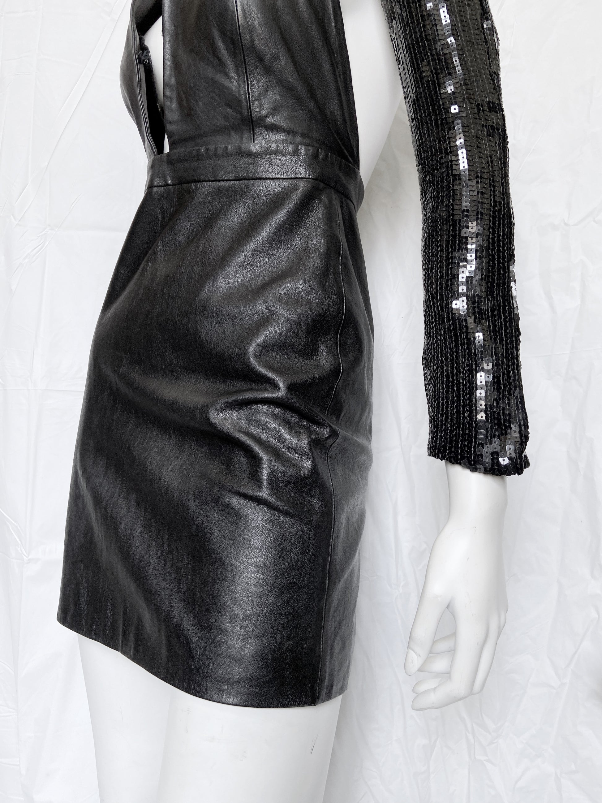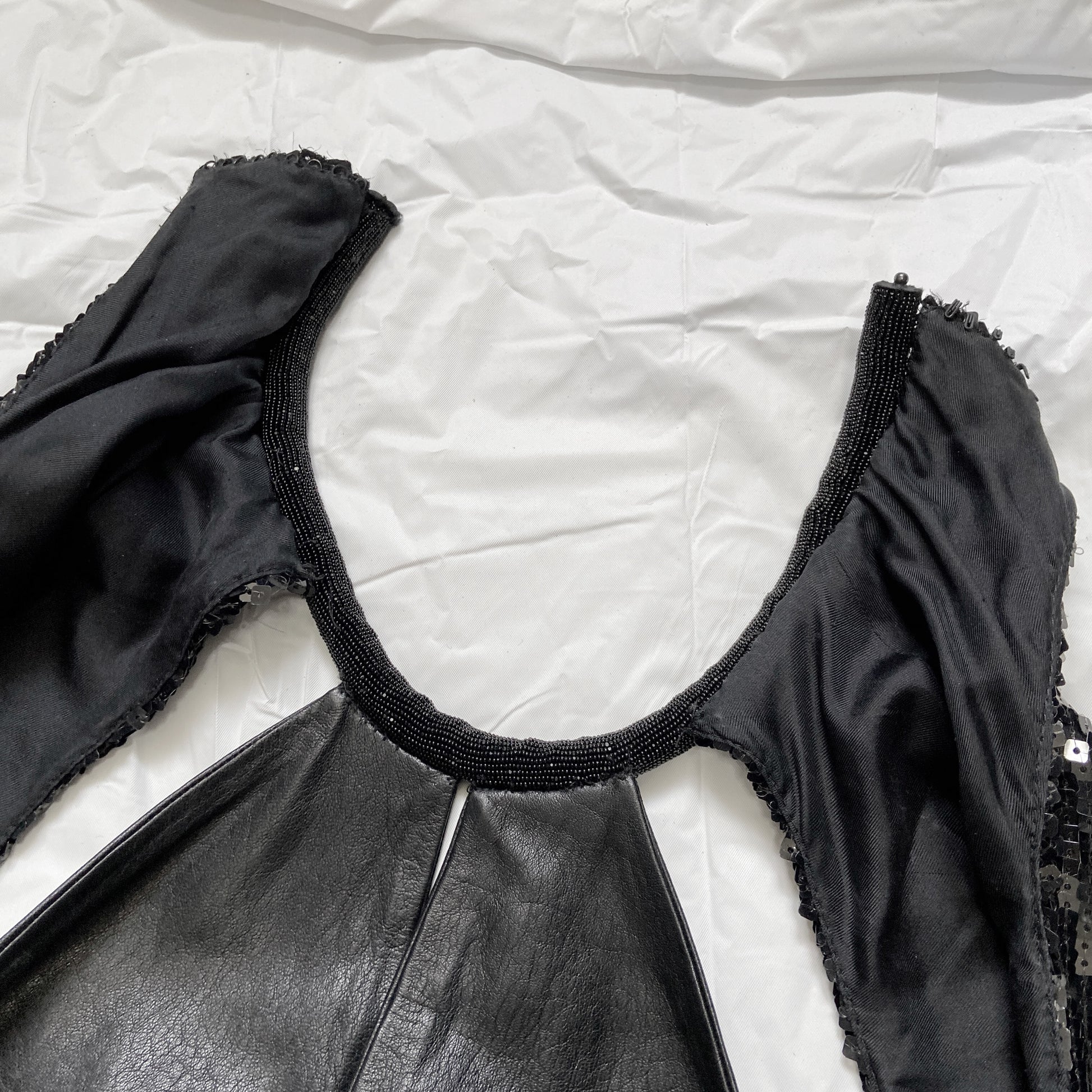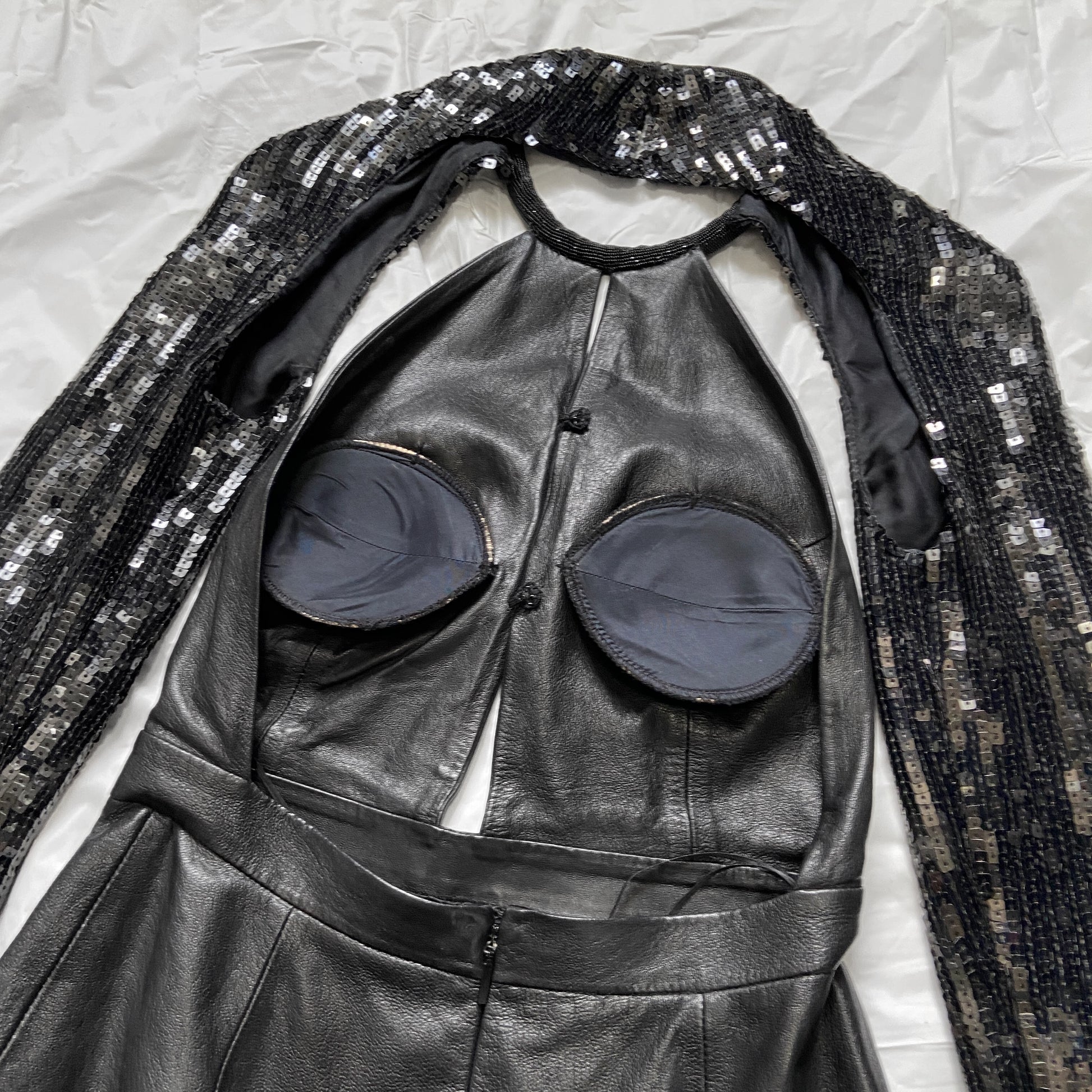 Saint Laurent Paris 2013 Hedi Beaded Collar Sequenced Sleeves Cut Out Backless Leather Dress
