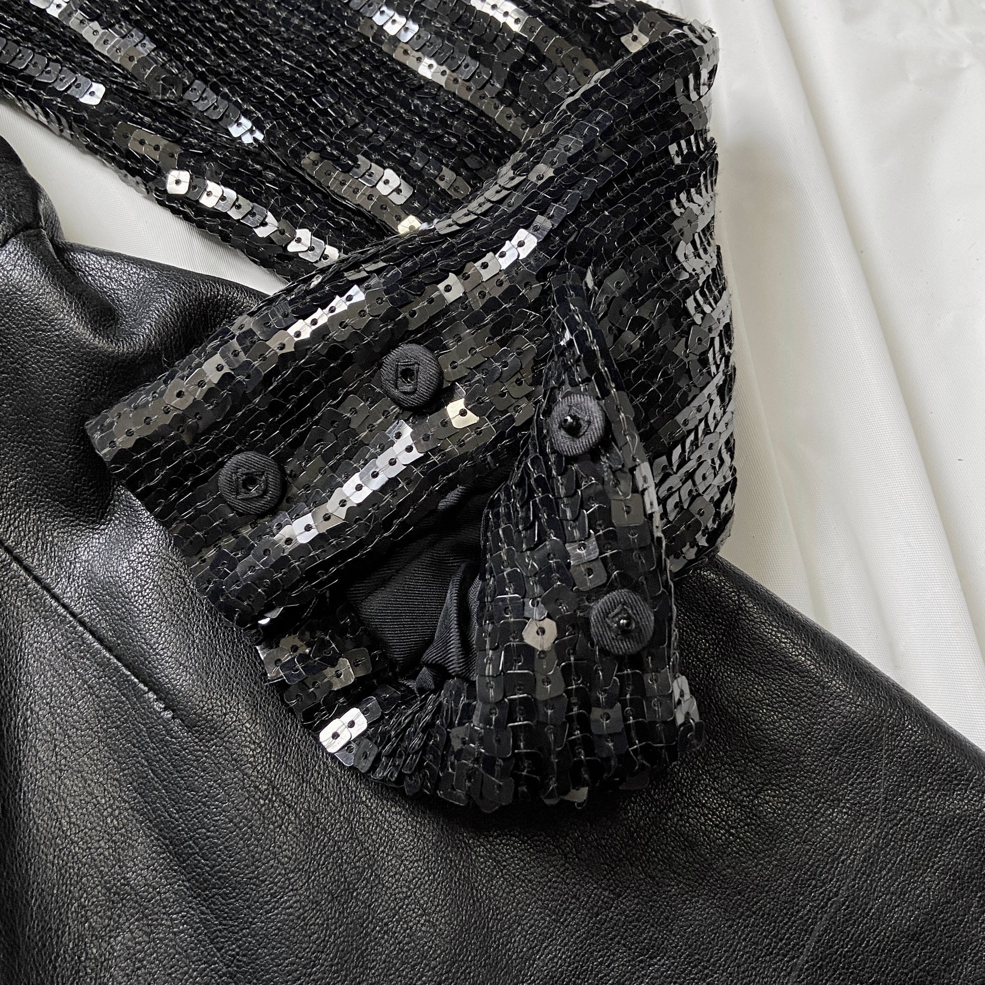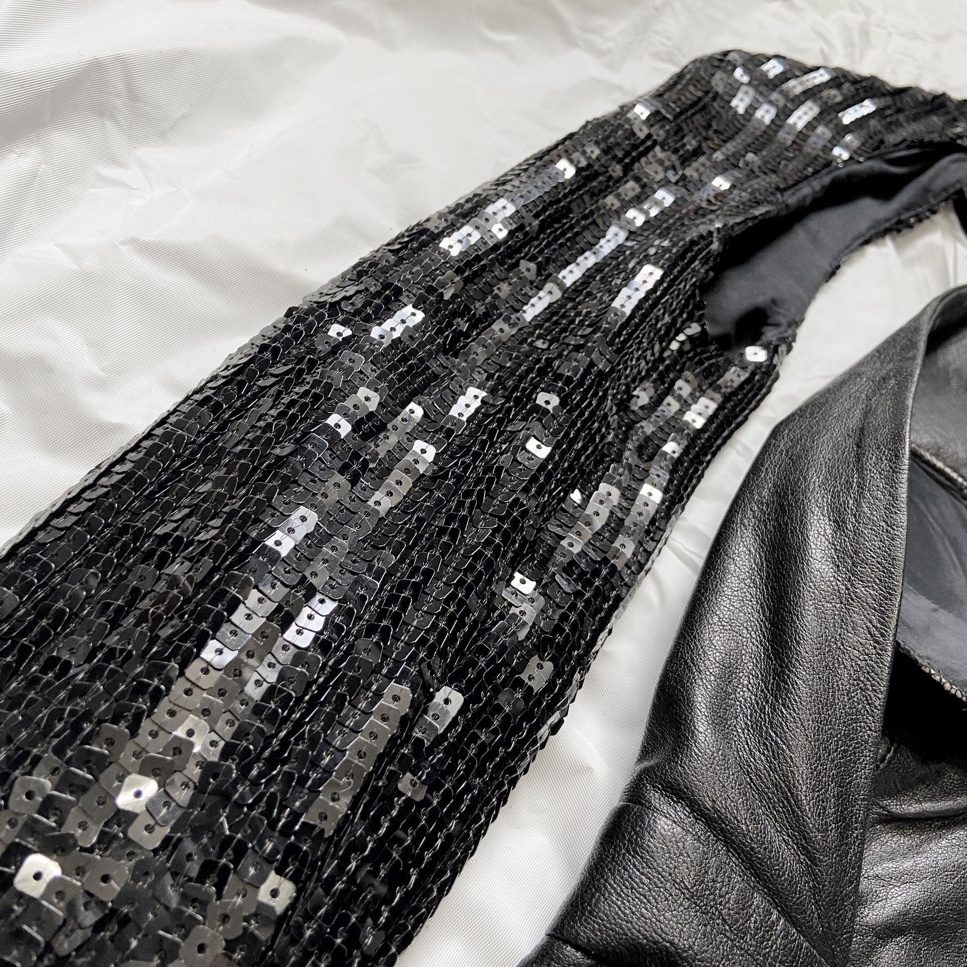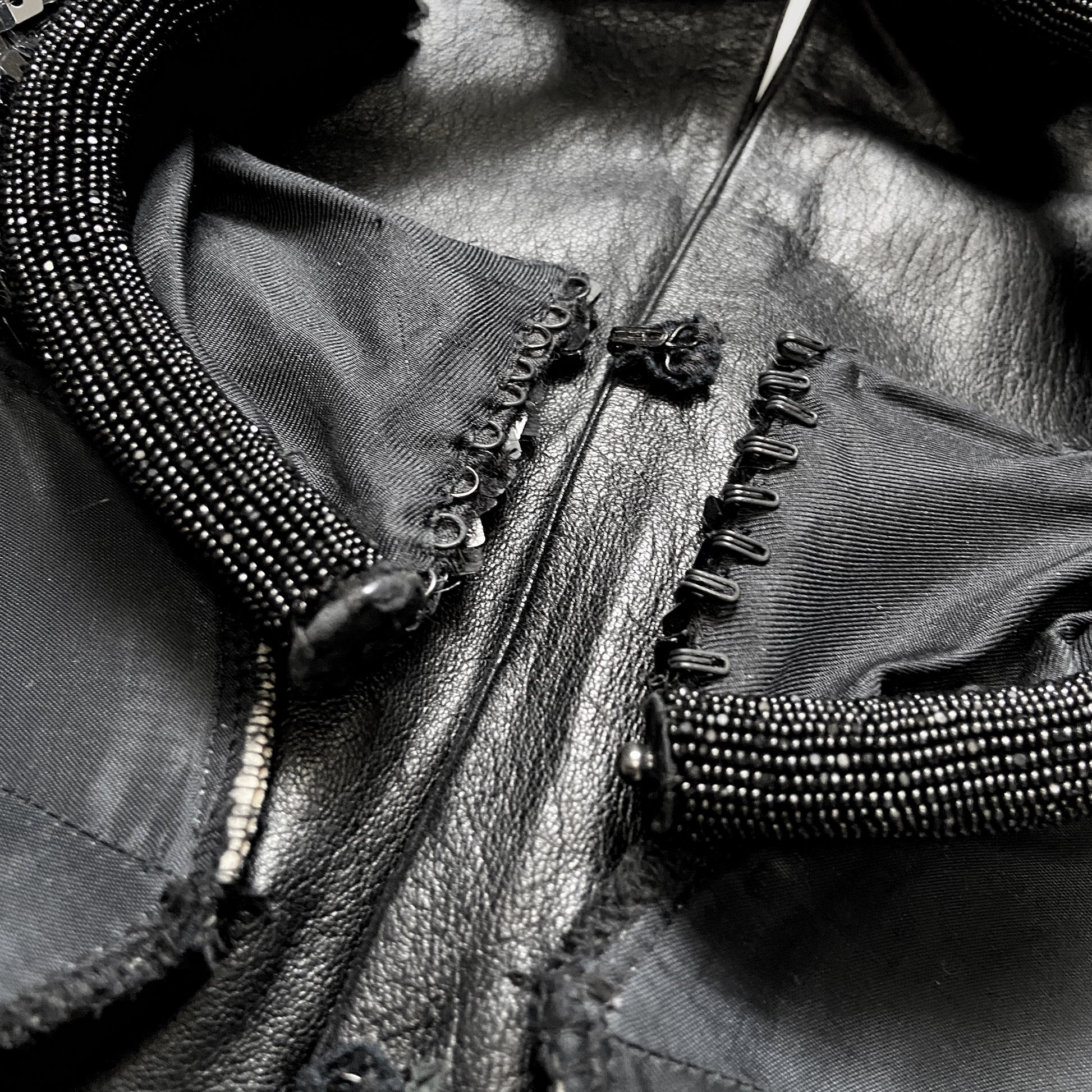 Saint Laurent Paris 2013 Hedi Beaded Collar Sequenced Sleeves Cut Out Backless Leather Dress