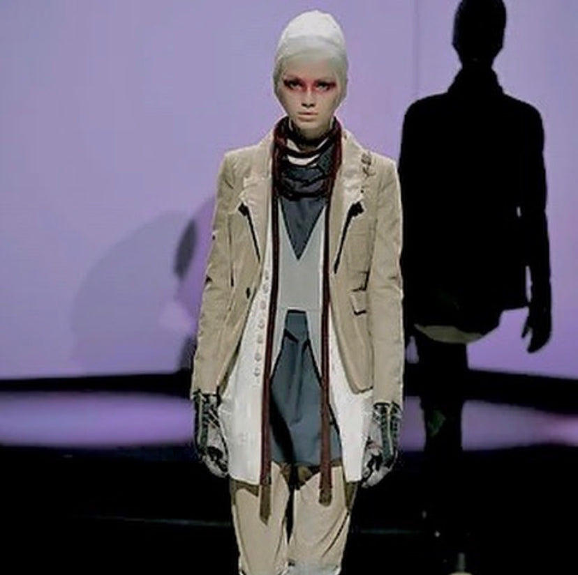 Jun takahashi’s aw08 show slowly, scene by scene, evolved into a gentle dialogue about hybridization that contributed some of the season's best thoughts about casual street wear (which is, let's face it, a much-neglected area in most designers' books).