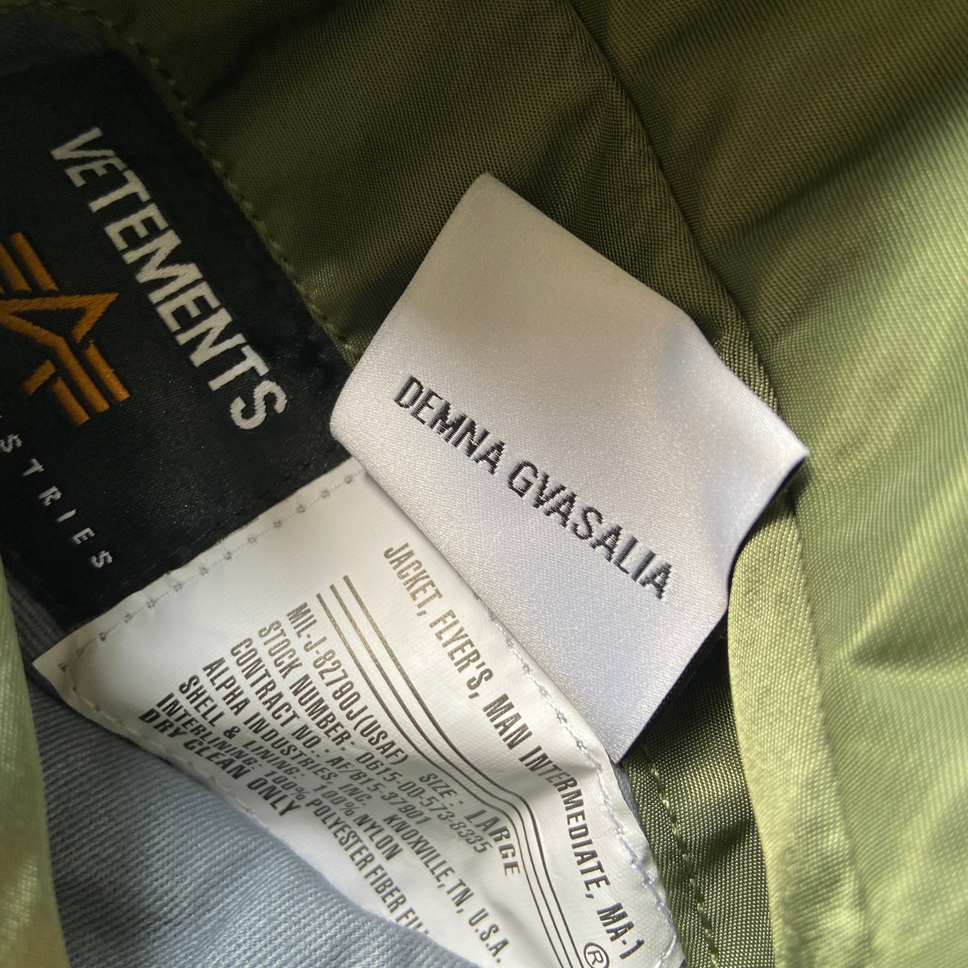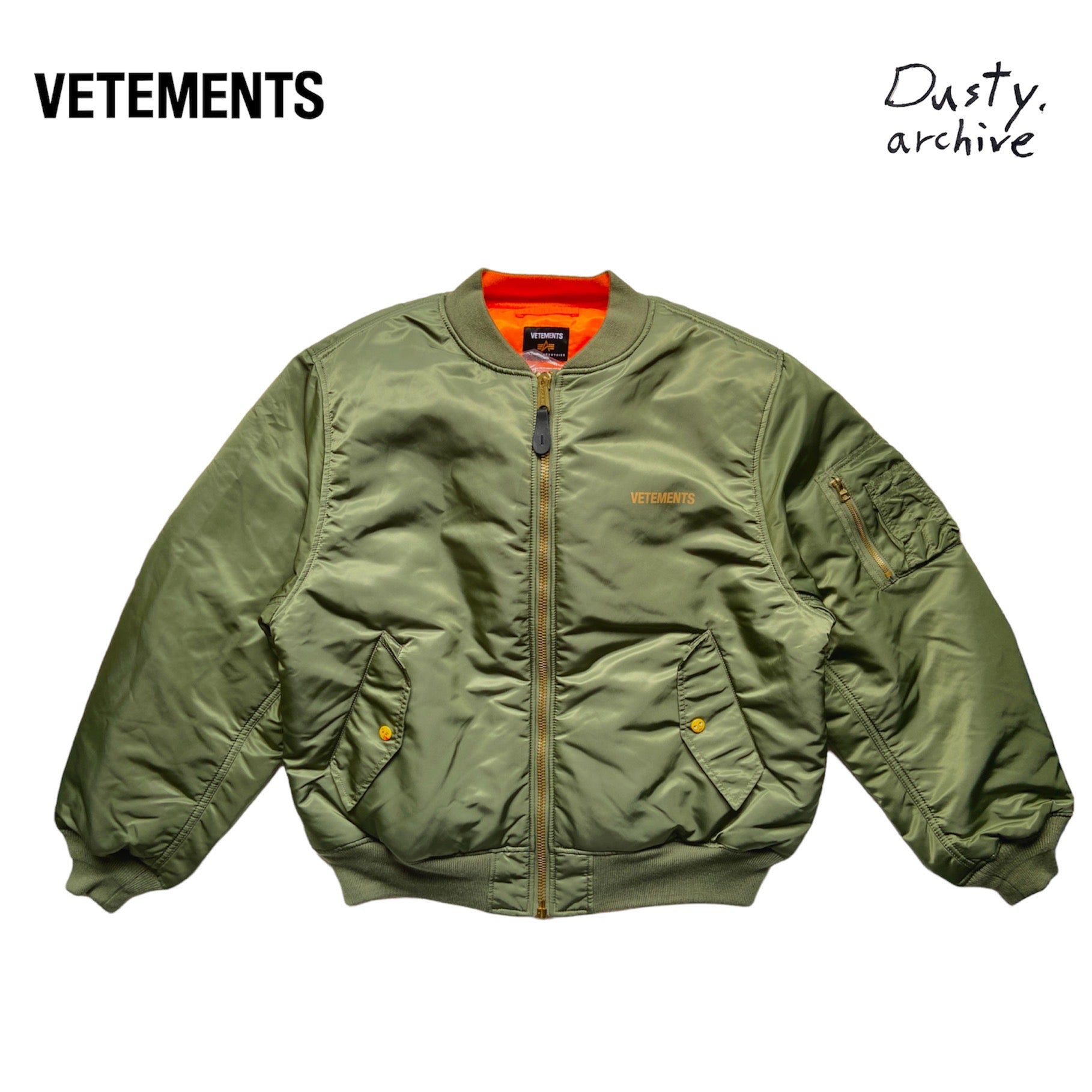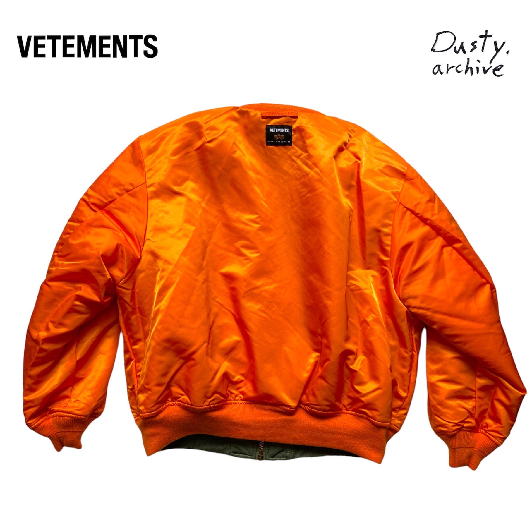 Another iconic bomber from vetements ss18 collection in collaboration with alpha industries. Rare colourway with two logo prints. Even rarer size L. Six pockets in total. Reversible orange side. Super oversized. With Vetements iconic emoji motif for snappers. Mint condition, no signs of usage