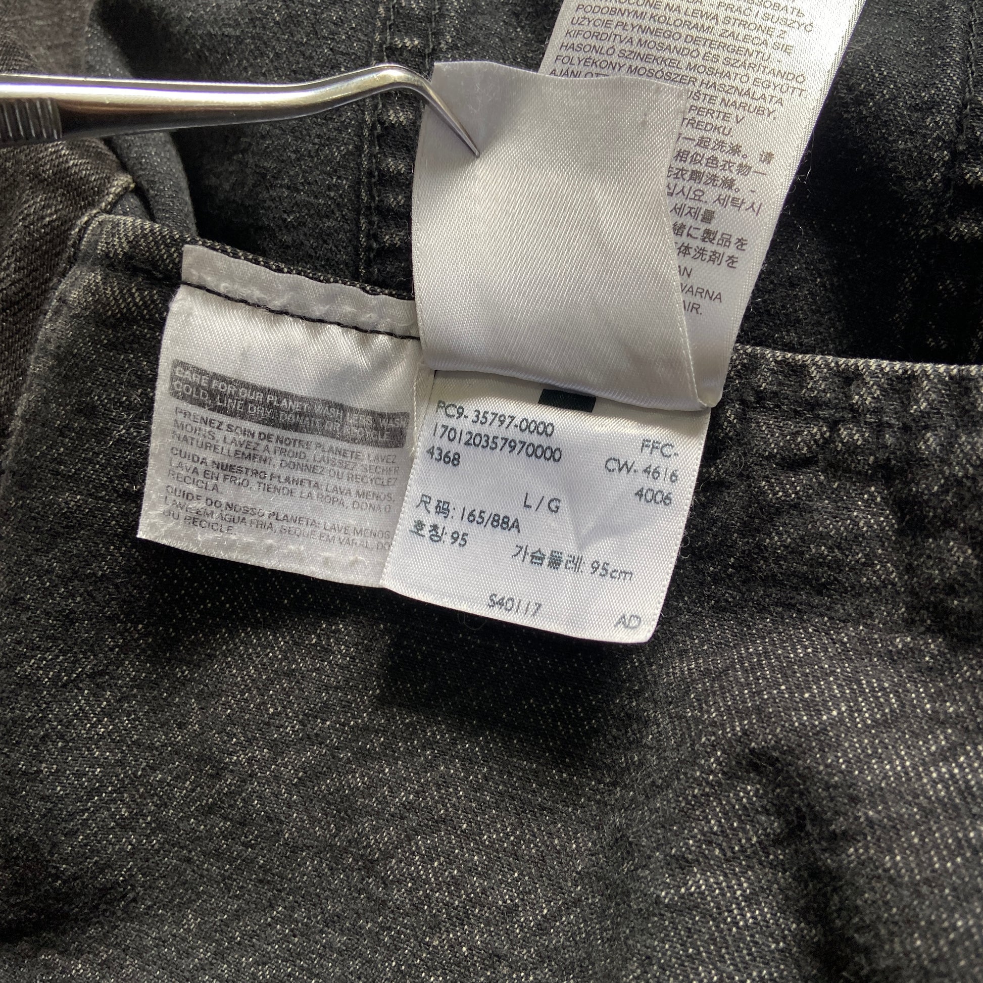 Another iconic jacket from the iconic Vetements spring summer 2017 runway in black colourway. As seen on hailey and kanye. Extremely extremely oversized, rare size L thats makes it even more bigger. Designed to hang off the shoulders. With hood. Side pockets and inner pockets. Subtle greatness.