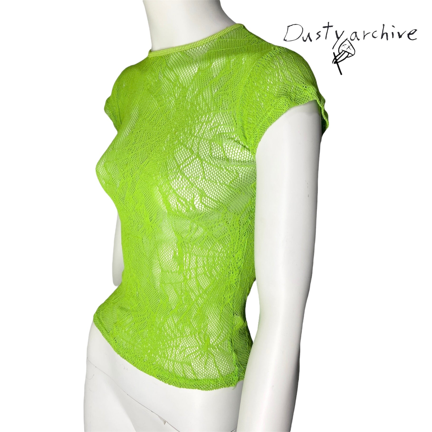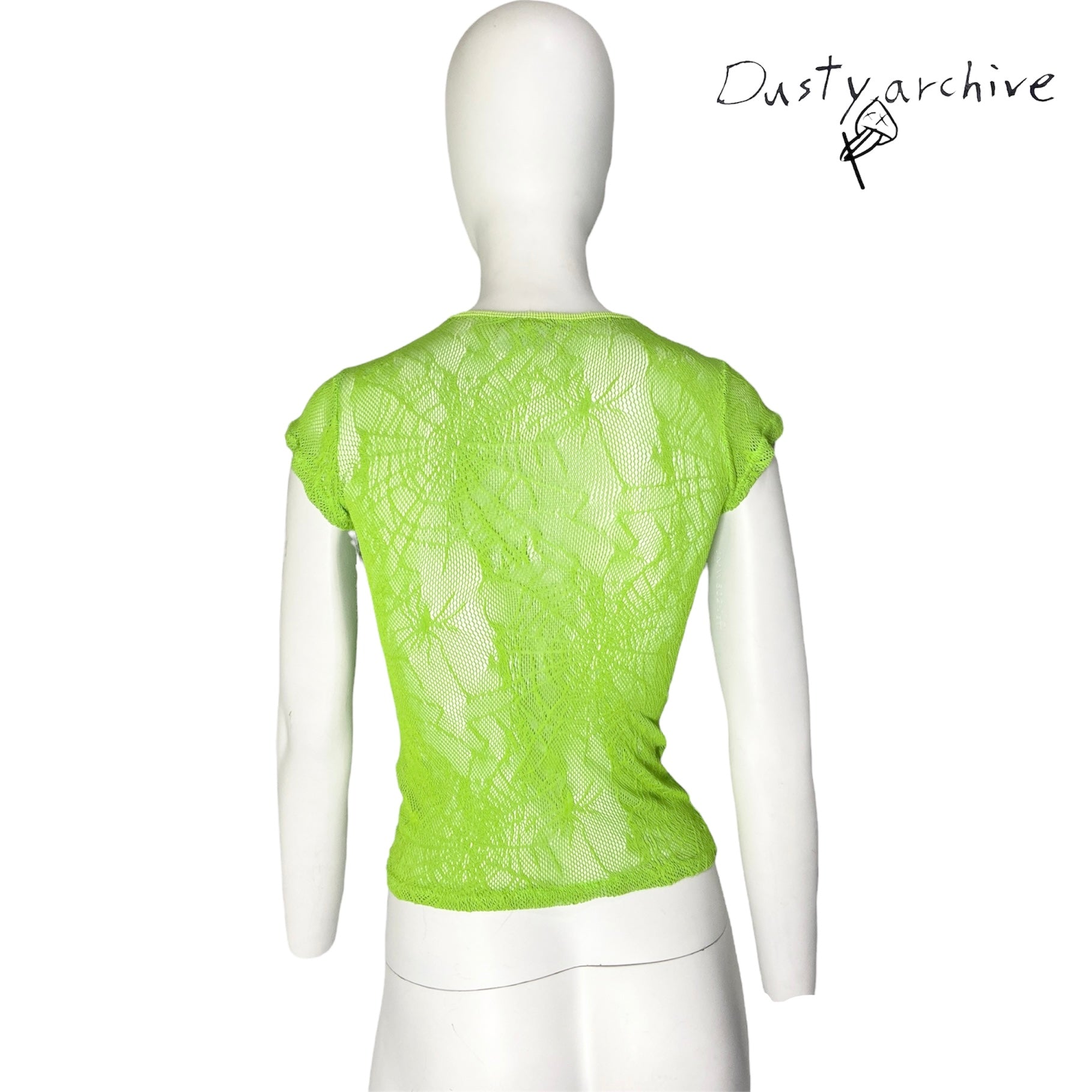 Stunning piece! Super y2k knit tee. When worn the spiderwebs come out. Super stretchy. Pls refer to model pic for actual worn effect.