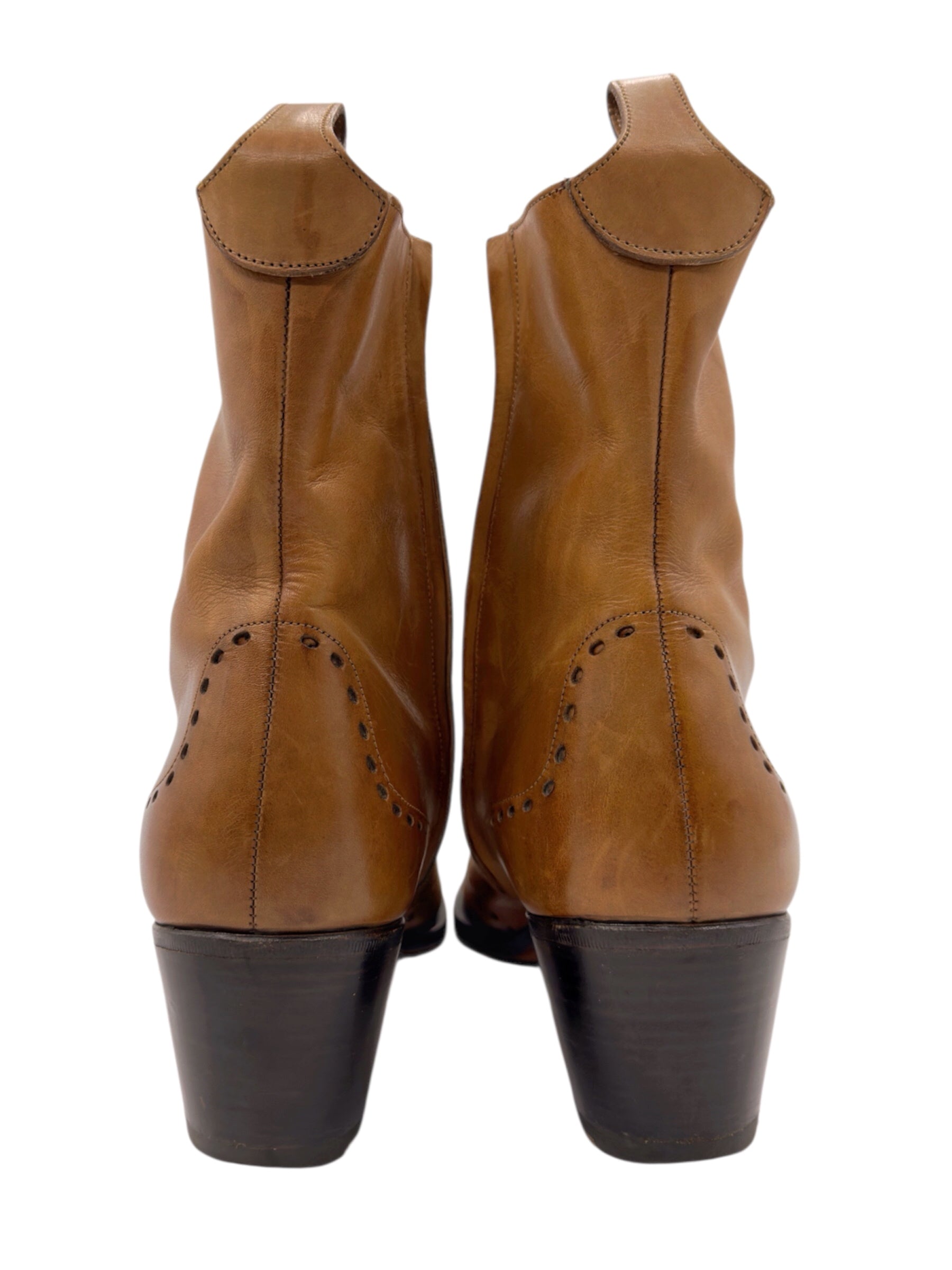 Yves Saint Laurent Rive Gauche Tom Ford Spring 2004 Men’s First Edition 65mm “Jonny” Brown Leather Wingtip Cuban Heeled Boots 44